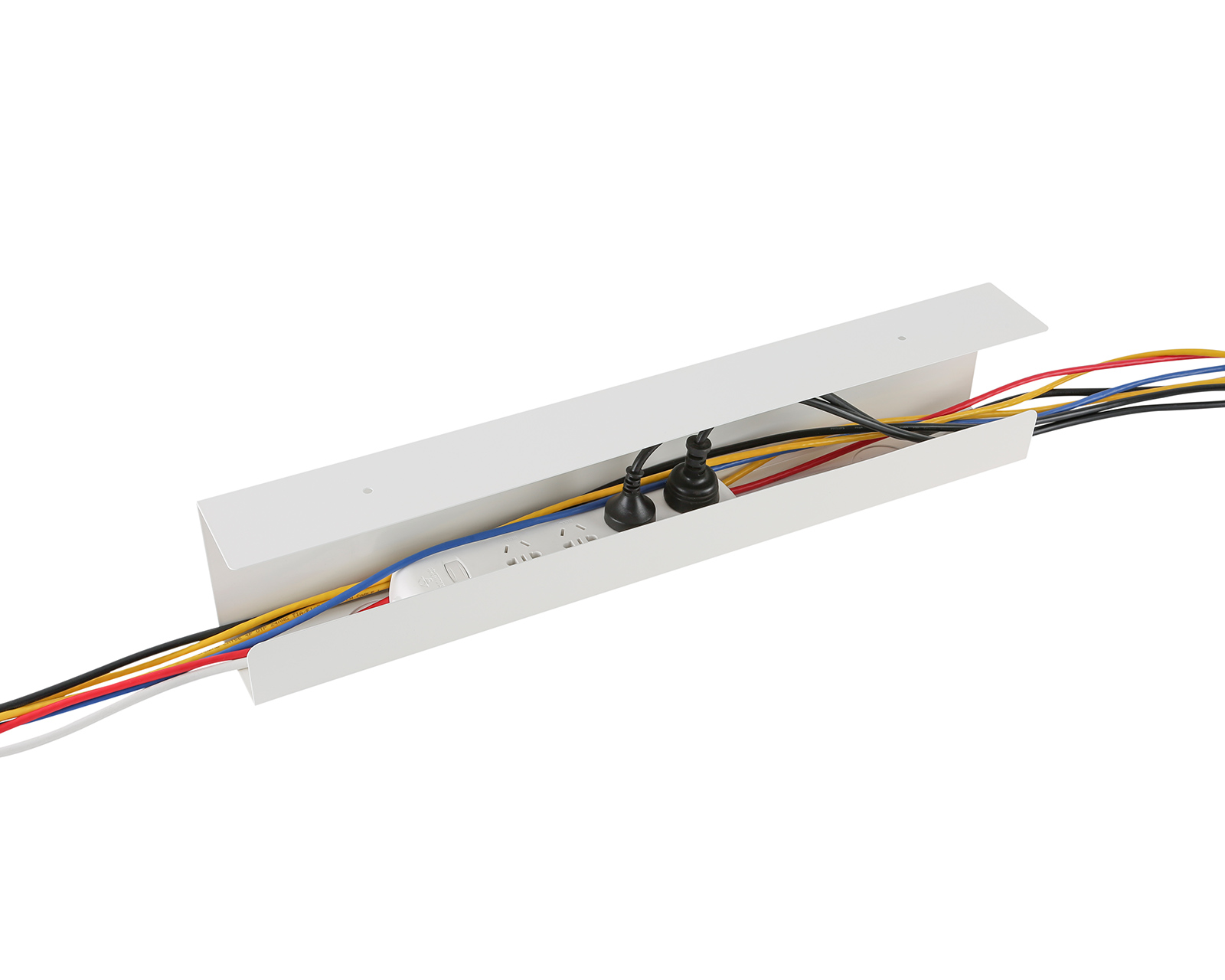 Cable channel for desks is a cable concealment solution from MaxMount that offers an effective way to hide cables under the desk. With its simple and open design, it enables a clean and organized work environment and is suitable for both home offices and gaming rooms.This cable channel is made of steel with a powder-coated surface that provides durability and aesthetics. It measures 600 mm long, 114 mm wide, and 76 mm high, offering plenty of space to manage power cables, network cables, and computer cables. Installation is simple with a screw fastening, making the setup smooth and secure. The cable channel is designed to fit both height-adjustable desks and conventional desks, increasing its usability.