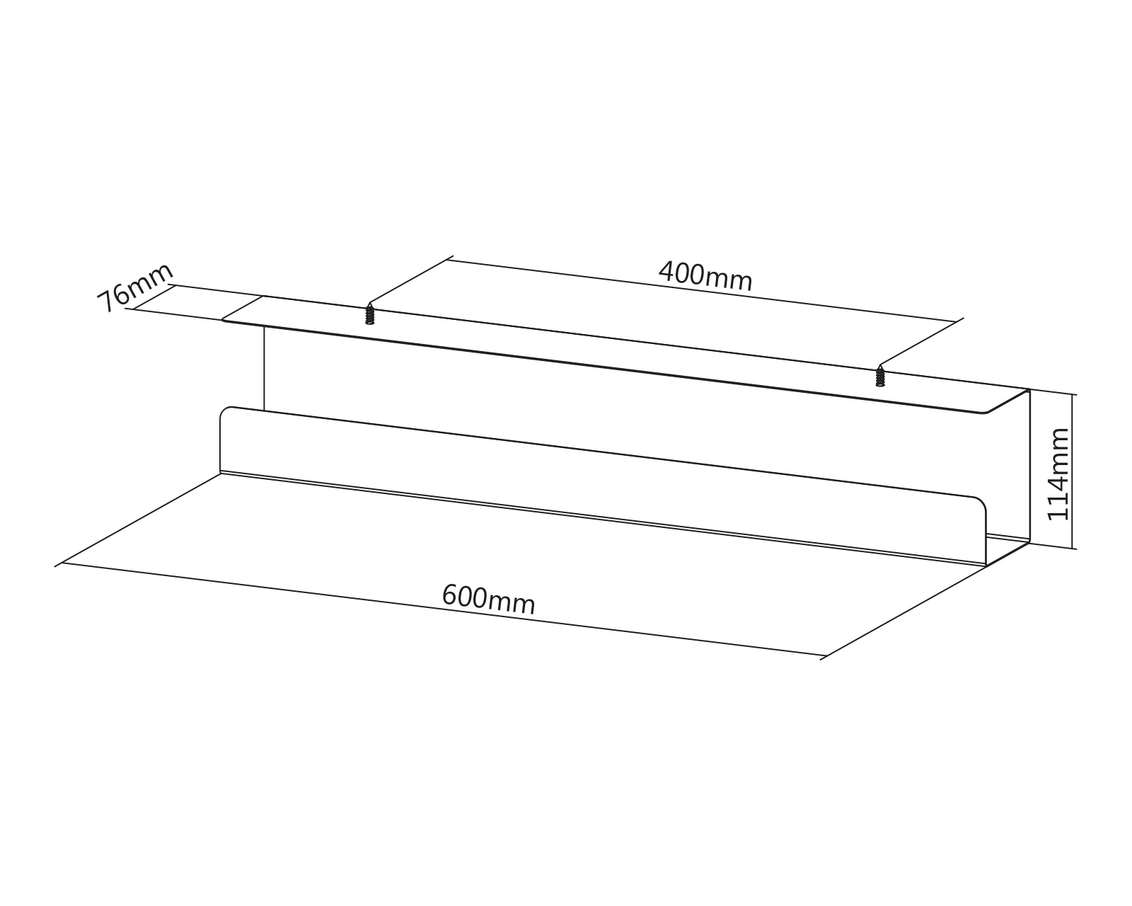 - Dimensions: 600x114x76mm