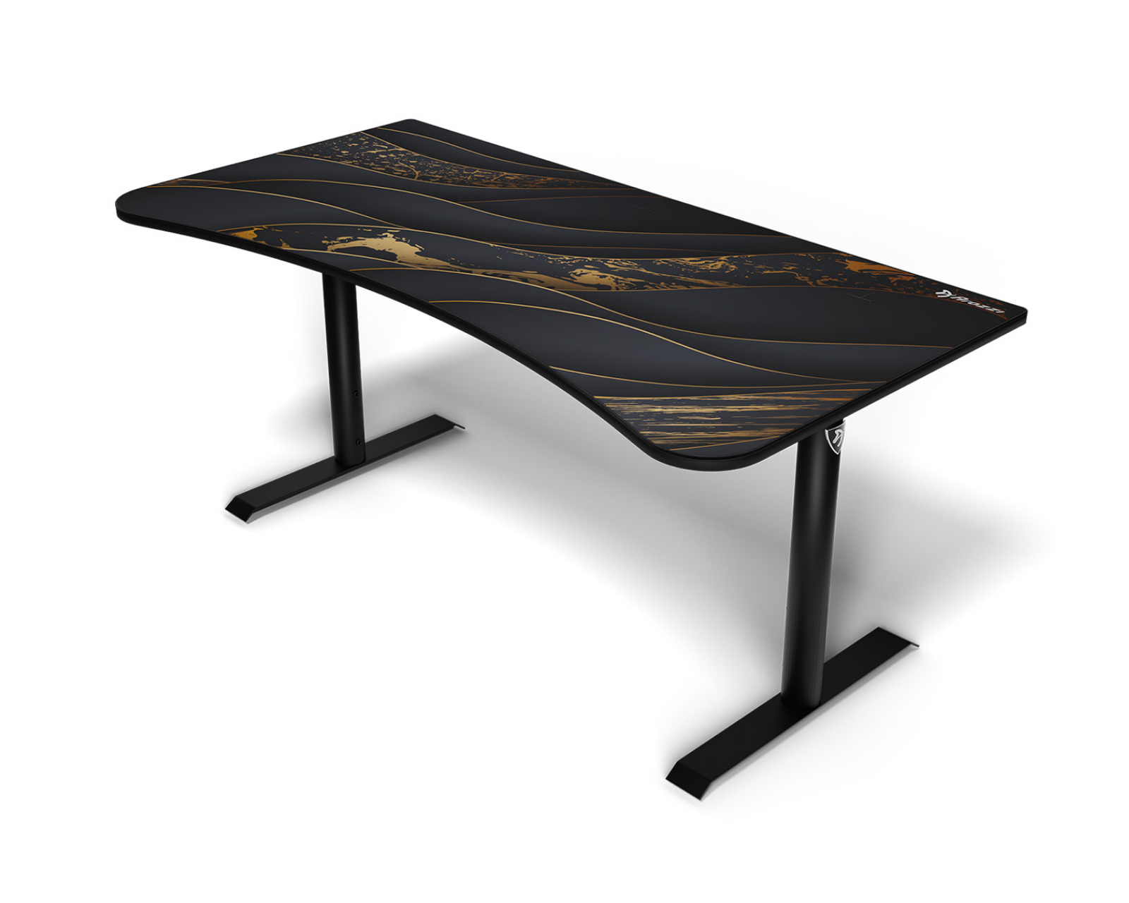 Arena Gaming Desk is a desk solution from Arozzi, designed for gamers and tech-oriented users. The large desk offers a generous working area with a width of 160 cm and a depth of 82 cm, creating space for multiple screens and gaming equipment. The desk is 71-81 cm high and has a maximum load of 80 kg, making it stable for long-term use. The desk is made from sustainable materials that ensure good build quality. It has no built-in lighting and is fixed in height, which makes it easier to place in different environments. Cable management is integrated to reduce clutter and provide a cleaner look. The color is black with gold details, giving a sleek and modern feel to the decor. The desk weighs 39 kg, which includes robust components to handle typical computer activities.Summary