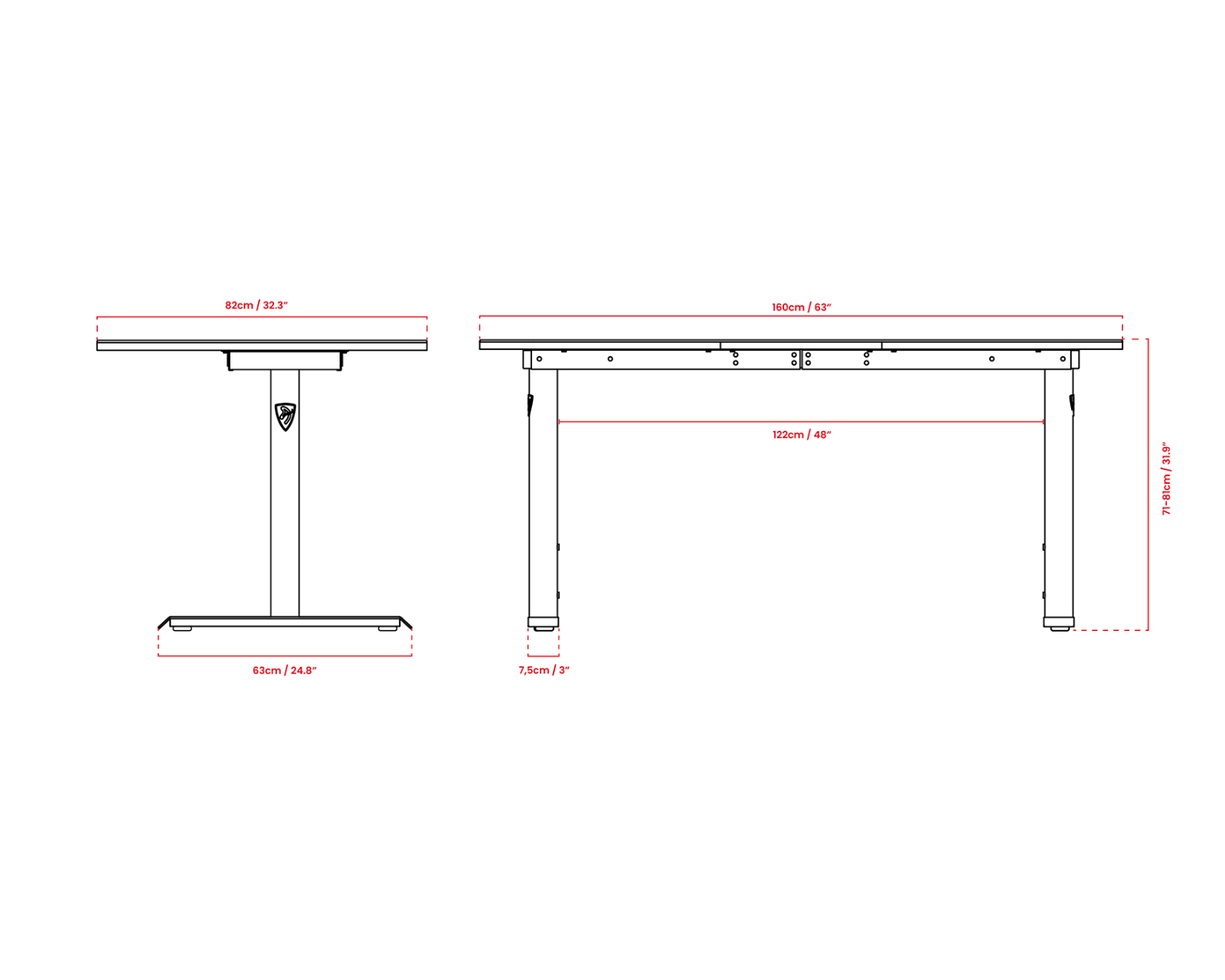 Arena Gaming Desk is a desk from Arozzi designed for gamers and e-sports enthusiasts. The dark gray furniture has a moderate size with a width of 160 cm, a depth of 82 cm, and an adjustable height between 71 and 81 cm. The desk is not height-adjustable but offers a solid construction with a maximum load of 80 kg. Cable management is integrated to keep cables organized and create a clean workspace.Arena Gaming Desk is made from durable materials that contribute to its stability and longevity. The gray surface is easy to clean and fits into most modern environments. The desk does not have lighting, which allows the focus to remain on the gaming experience rather than distracting lights. It weighs 39 kg and is designed to remain stable even during intense use.