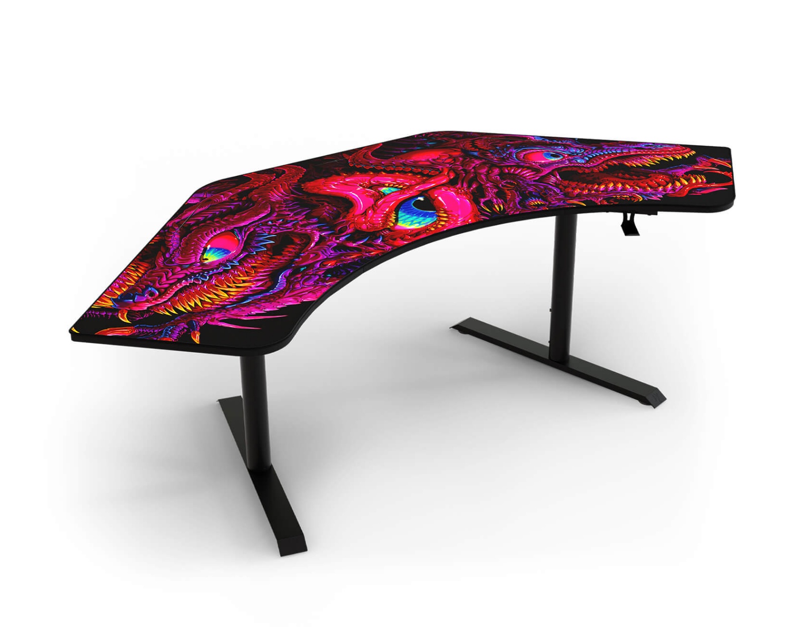 This gaming desk is designed for gamers who want a stable and functional workspace for their gaming and work sessions. With a sleek and modern cool Crawling Chaos design. The desk's construction is robust and made from high-quality materials to ensure durability and stability during use. It is equipped with a wide surface, providing enough space for multiple monitors, a keyboard, and a mouse. The Arena Angelo Gaming Desk features adjustable height and relief plates to meet gamers' needs for comfort and ergonomics. The desk also has cable management to minimize cable clutter, providing a clean and organized workspace.