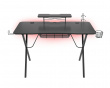 Holm 300 RGB is a desk from Genesis, designed for gamers who require a functional and spacious gaming table. With dimensions of 75 x 60 x 120 cm, this desk offers ample space for all your gaming equipment and features built-in RGB lighting that creates an engaging gaming environment. It also provides ergonomic benefits through its monitor stand that helps reduce eye strain during long gaming sessions.The desk is built with a robust and durable construction where the laminated surface of carbon fiber is made from high-quality MDF. This provides a solid platform for long-lasting use. With a maximum mouse pad that adds extra space, it gives you room for all accessories. The desk is also equipped with cable management, which facilitates neatness among the cables. It has metal hangers for headsets and controllers, as well as a cup holder to keep drinks close at hand.
