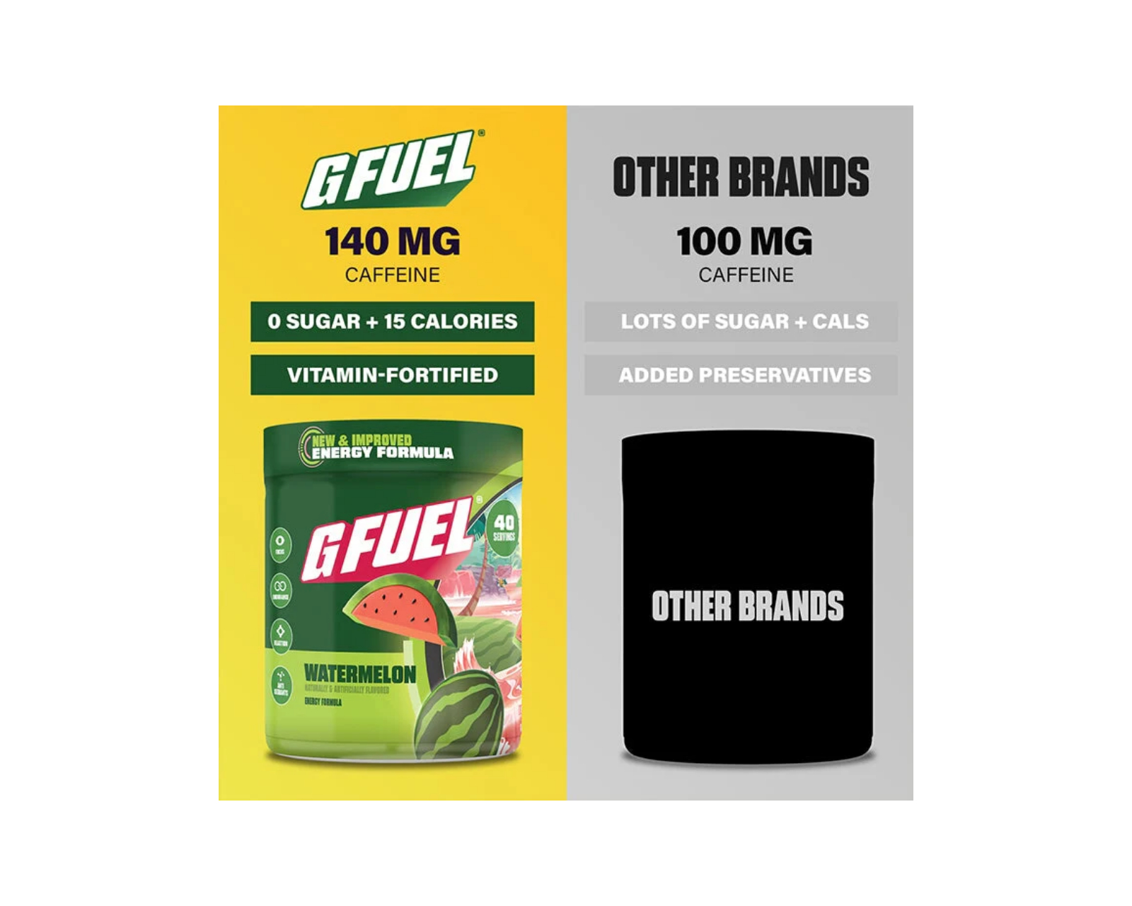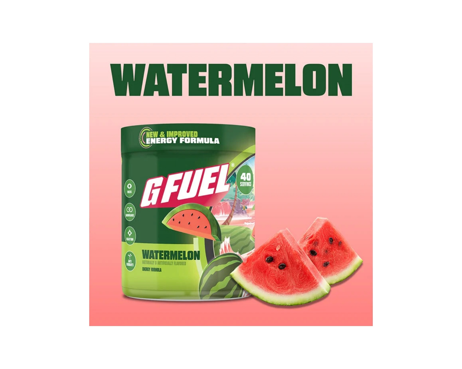 Watermelon 2.0 from G FUEL offers a watermelon flavor with 40 servings. Contains 140 mg of caffeine per serving. Designed to be free from added sugar.Watermelon 2.0 combines a refreshing taste with a balanced caffeine kick, making it ideal for active users looking for a tasty hydration option. With a total of 40 servings per packaging, you can enjoy this delicious drink without worrying about running out of flavor.