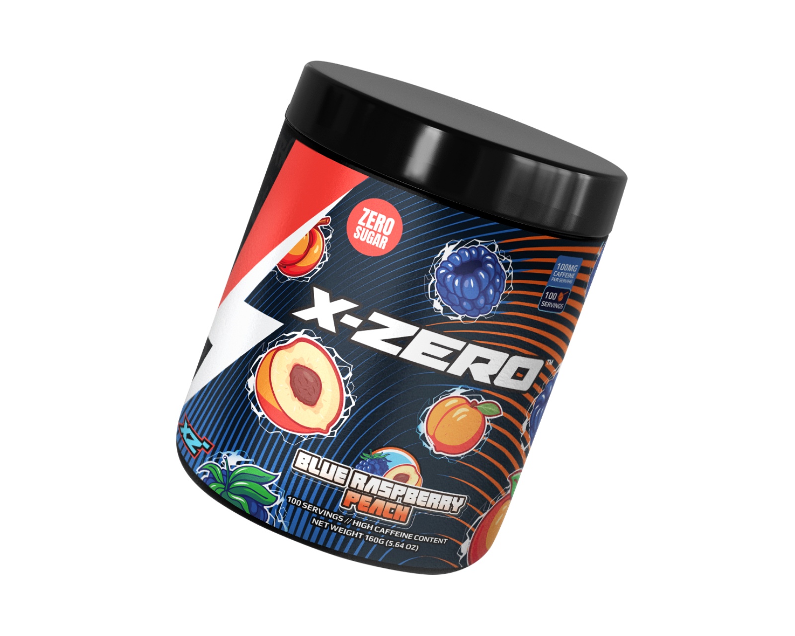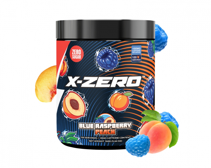 X-Zero Blue Raspberry Peach is a drink from X-Gamer that combines flavor and dietary supplements in a single serving. The product contains 100 servings and offers an energetic boost with a caffeine content of 100 mg per serving. It is intended for gamers looking for a way to increase their concentration and endurance during gaming sessions.The drink is made with a focus on quality and taste, where blue raspberry and peach flavors provide a fresh and appealing blend. It weighs a total of 160 grams and comes in a black and blue package, making it both stylish and functional. X-Zero is suitable for those aged 15 and older, making it an appropriate energy source for youth and adults in a gaming environment.