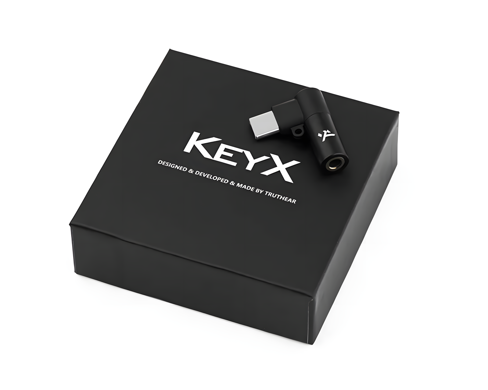 KeyX Portable DAC/AMP is a compact DAC amplifier from Truthear, designed to deliver high-quality sound from USB-C devices. It is based on the Cirrus Logic CS43131 chip and supports microphone connection, making it convenient for both home and travel use. With a design that includes a hook clip, you can easily attach it to your phone or bag for easy access.The build quality of KeyX is characterized by its compact format and robust construction, which makes it ideal for mobile use. The DAC amplifier also supports EQ functionality, giving you the ability to adjust the sound signature according to personal preferences for a customized listening experience. It is easy to integrate into your existing audio setup and offers a direct connection via USB-C, minimizing the need for extra cables and adapters. The combination of high sound quality and user-friendliness makes KeyX an excellent choice for audiophiles and everyday users.