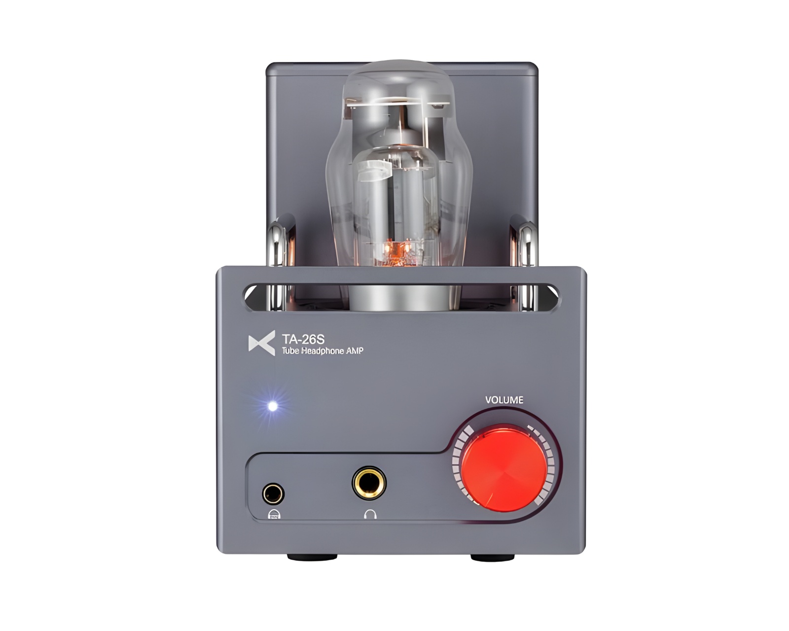 TA-26S is a tube-balanced headphone amplifier from xDuoo that offers a high-performance audio solution for headphone users. It features a 6N8P vacuum tube in the preamp stage and a 6N5P vacuum tube in the buffer stage. TA-26S is designed to drive headphones with impedances between 60Ω and 600Ω and delivers up to 500mW of power with total harmonic distortion of ≤0.1%.The product includes both a standard 6.35mm headphone output and a new 4.4mm balanced headphone output for higher sound quality. It is equipped with professional resistors and capacitors, contributing to a signal-to-noise ratio of 110dB. The frequency response ranges from 10Hz to 30kHz. The build quality is characterized by a sandblasted aluminum chassis, providing a robust design. TA-26S has an RCA preamp function as well as an RCA line-out function.