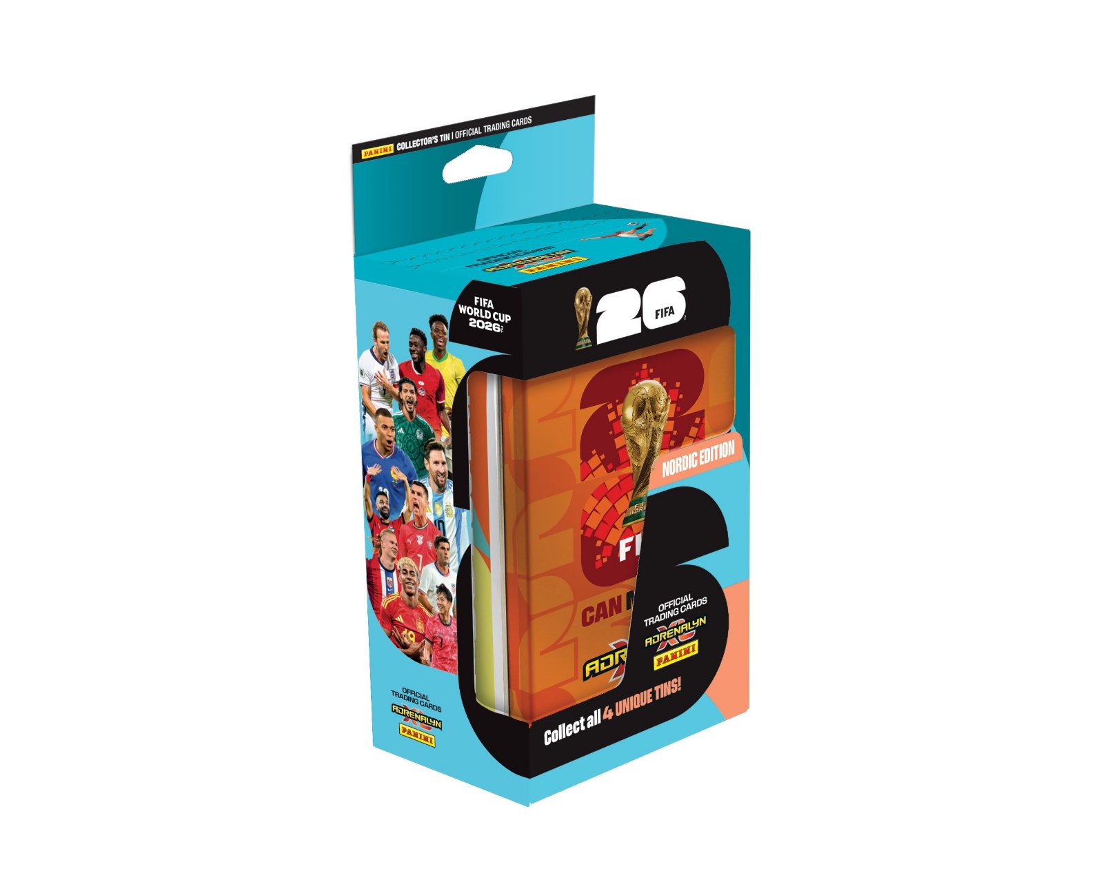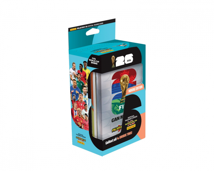 World Cup 2026 Mega Tin - Nordic Edition is a collector's box from Panini designed to provide you with a stylish and practical storage for your football cards. This Mega Tin includes 8 boosters, 3 Limited Edition cards, 1 Golden Baller, and 1 Online Coin card, making it an essential addition for all enthusiastic collectors. With its unique design and variety of cards, this tin offers an exciting way to expand your collection.The Mega Tin is made from sustainable materials that protect your cards from wear and damage. It provides secure storage that is both functional and visually appealing. The accompanying boosters contain cards that are carefully selected to give you the opportunity to complete your collection, while the Limited Edition cards and Golden Baller add extra value to the tin. The Online Coin card also offers benefits in games and communities, making this product even more attractive for gamers and collectors.