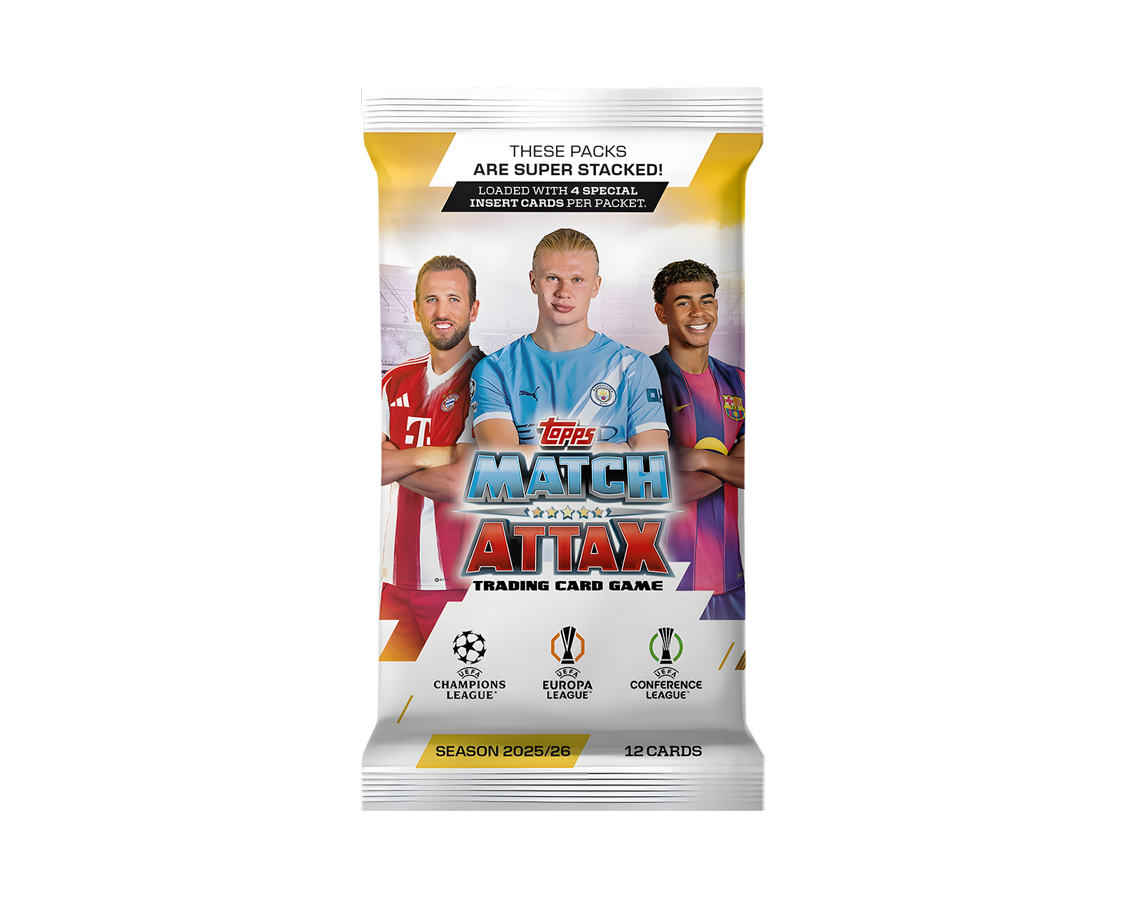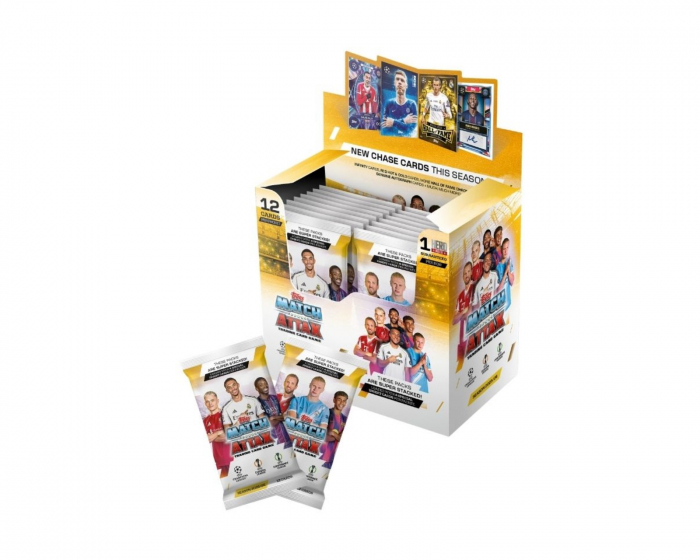 Match Attax Cards UCL 25/26 Display is a product from Topps that offers a comprehensive collection of football cards. The display box contains 32 booster packs, and each pack has 12 cards, totaling 384 official collector cards. This set is intended for collectors who wish to dive into the UEFA Champions League experience or for those who want to start building a large card collection. The box also includes a guaranteed at least 1 Hero card, adding extra excitement with each opened pack.Each booster pack consists of high-quality cards, with a special focus on the game's most prominent players and clubs. The cards are carefully designed to reflect statistics and performances from matches in the UEFA Champions League, Europa League, and Conference League. The collection combines functionality and enjoyment, making it an interesting item for both new and experienced collectors. Additionally, the materials of the cards are durable and intended to withstand the stresses that often come with handling.