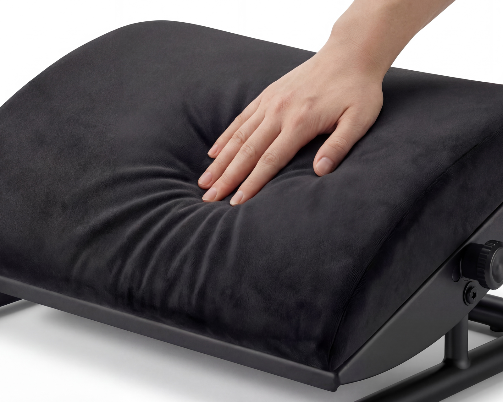 Adjustable Footrest is an ergonomic accessory from MaxMount, designed to provide support and comfort for legs and feet while working at a desk. It offers a tilt adjustment of +20° to -20° and is made of foam and steel. The footrest is well suited for people who work both full-time and part-time at a computer.The footrest consists of foam filling that provides a soft surface for the feet, together with a sturdy steel frame for stability. With dimensions of 441x332x158 mm and a maximum load of 25 kg, it is adapted to withstand daily use. The footrest is easy to assemble and adjust to the user's preferences. It comes with a soft removable cover that is easy to clean.
