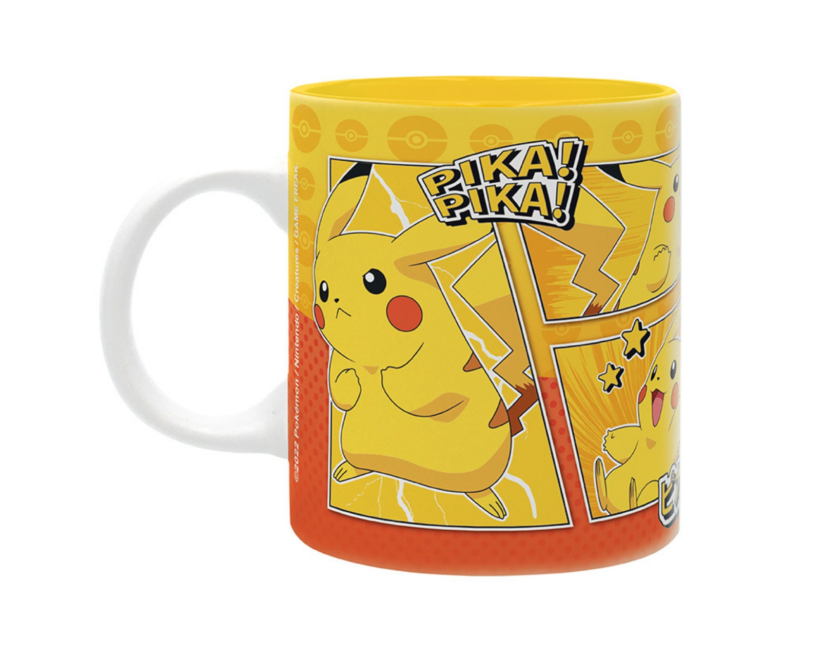 Pokémon - Mug - 320 ml - Comic Strip is a high-quality ceramic mug from Abysse that will brighten your everyday life with its charming design featuring Pikachu. With a capacity of 320 ml, it is perfect for both coffee and tea, making it an excellent companion for all Pokémon fans. The product is both microwave and dishwasher safe, making it practical for daily use.This mug is made of durable ceramic that ensures it can handle both hot and cold beverages without compromising quality. The colorful and graphic design captures the essence of the Pokémon universe and makes the mug a collectible item for both gamers and enthusiasts. With a standard size, it is also easy to handle and fits comfortably in most cup holders and mug racks. Additionally, it is easy to clean and retains its color and shine over time, thanks to the quality material. The practical size and cute design make it a perfect gift for both young and adult Pokémon fans.