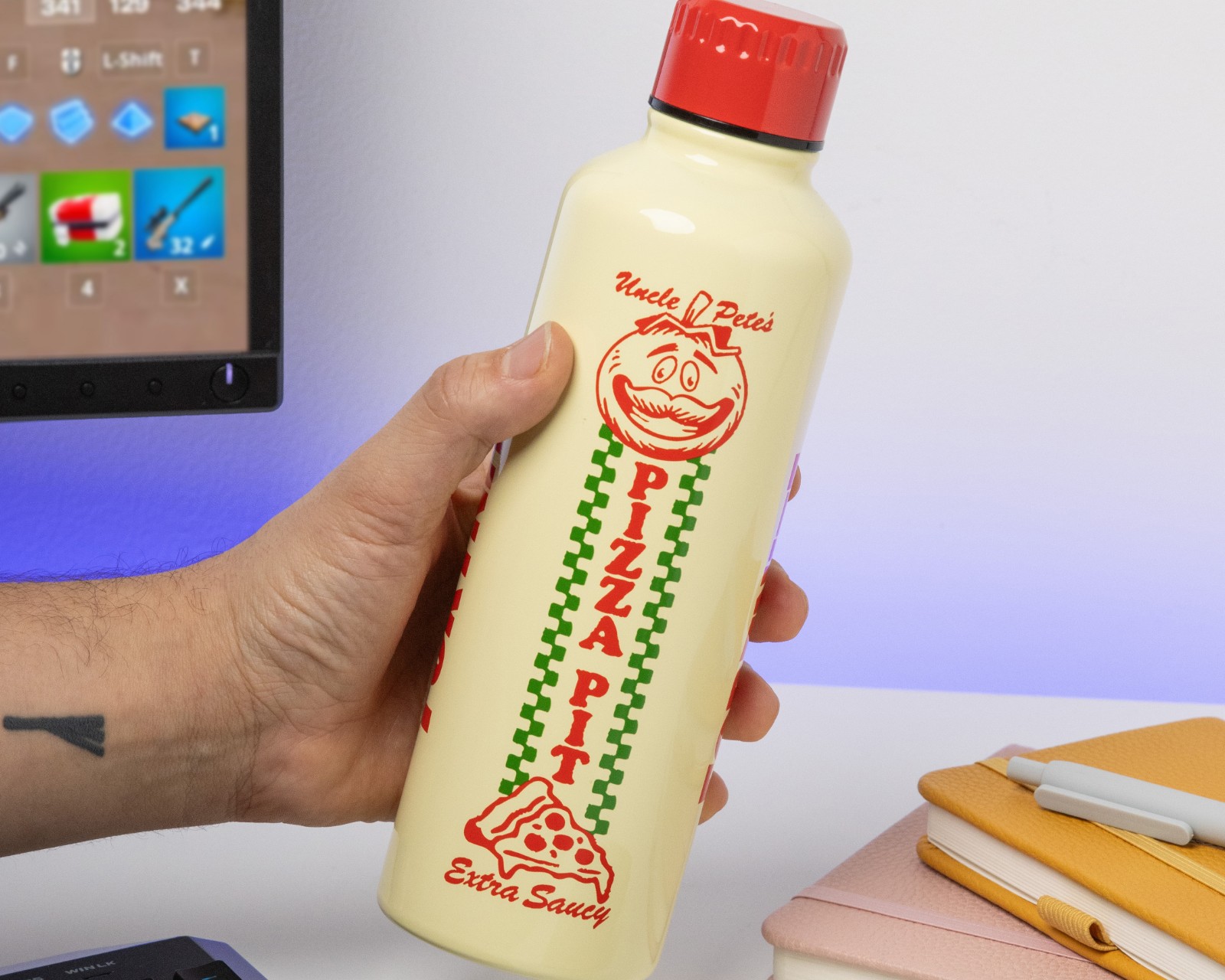 The Fortnite Metal Water Bottle 500ml is a functional water bottle designed to keep drinks hot or cold for longer. Made from stainless steel with a capacity of 500ml, it is a practical choice for hikers, students or office workers. The screw-on cap ensures that the bottle is leak-proof and easy to handle. A clear target for fans of Fortnite, the bottle is an officially licensed product with a Pizza Pit design.The bottle is designed for both function and durability. Stainless steel is the material of choice, providing a robust construction with good insulation properties. The practical screw top prevents spills, making it easy to use during various activities. The water bottle is designed to be reusable, contributing to a more sustainable lifestyle. Please note that it is not suitable for dishwasher or microwave, which is important to consider in order to preserve its quality and functionality. The bottle has a design that reflects the popular game, making it an attractive accessory for all Fortnite enthusiasts.