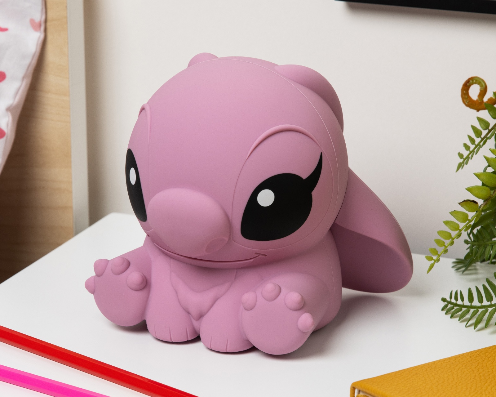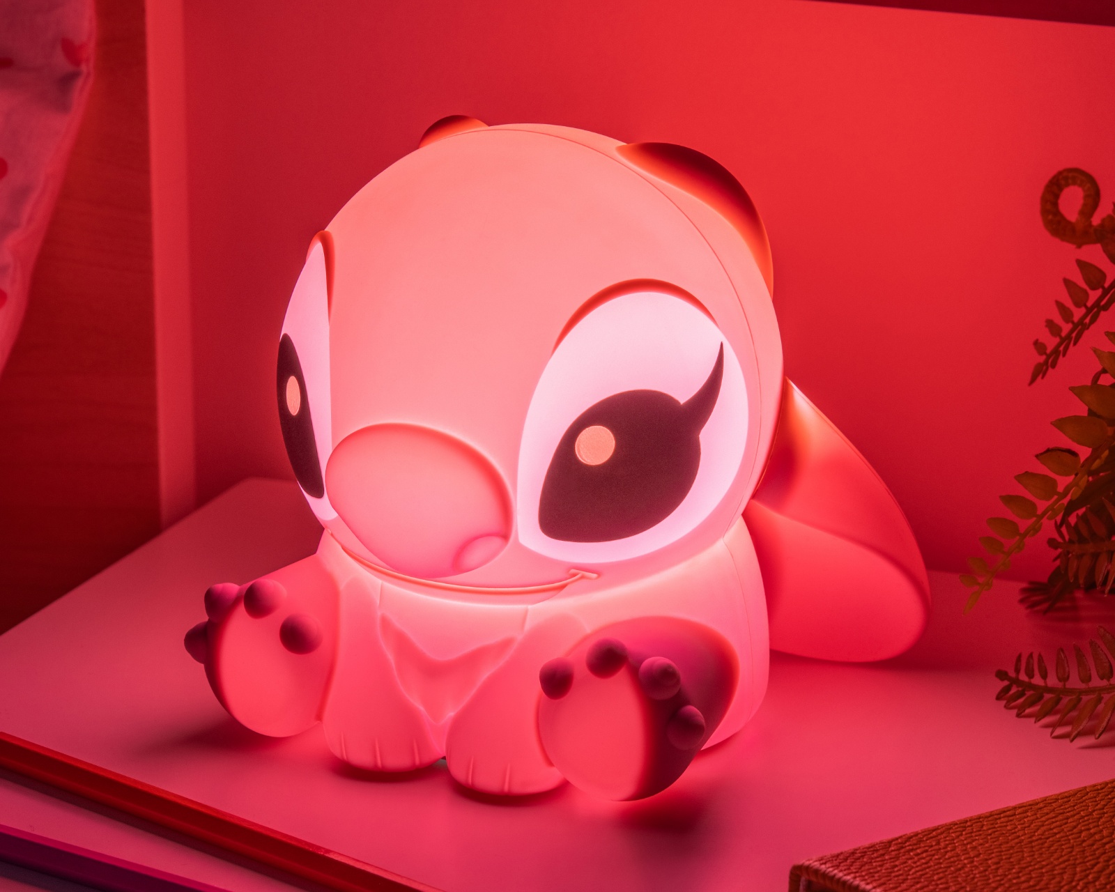 Angel SquishyGlo rechargeable silicone lamp from Paladone is an innovative lighting solution designed to add a playful touch to your home. This 14.5 cm (5.7") tall lamp takes the form of an angel and is made of child-friendly, soft silicone which makes it safe and easy to handle. With a smart auto-off feature that activates after 1-3 hours, it offers practical use as a nightlight for both children and adults. It also has three different brightness levels, allowing you to customize it to create a calming atmosphere at bedtime.The lamp's components include an integrated non-removable rechargeable battery that can be charged with the included USB cable. Once charged, it is cordless, providing the freedom to place it anywhere in the room. The lamp's compact design makes it easy to move between nightstands and shelves. Since it is connected to the Lilo & Stitch universe, it is also perfect as a decorative detail for fans of the series, adding a cozy and playful feel to the nursery or living room.