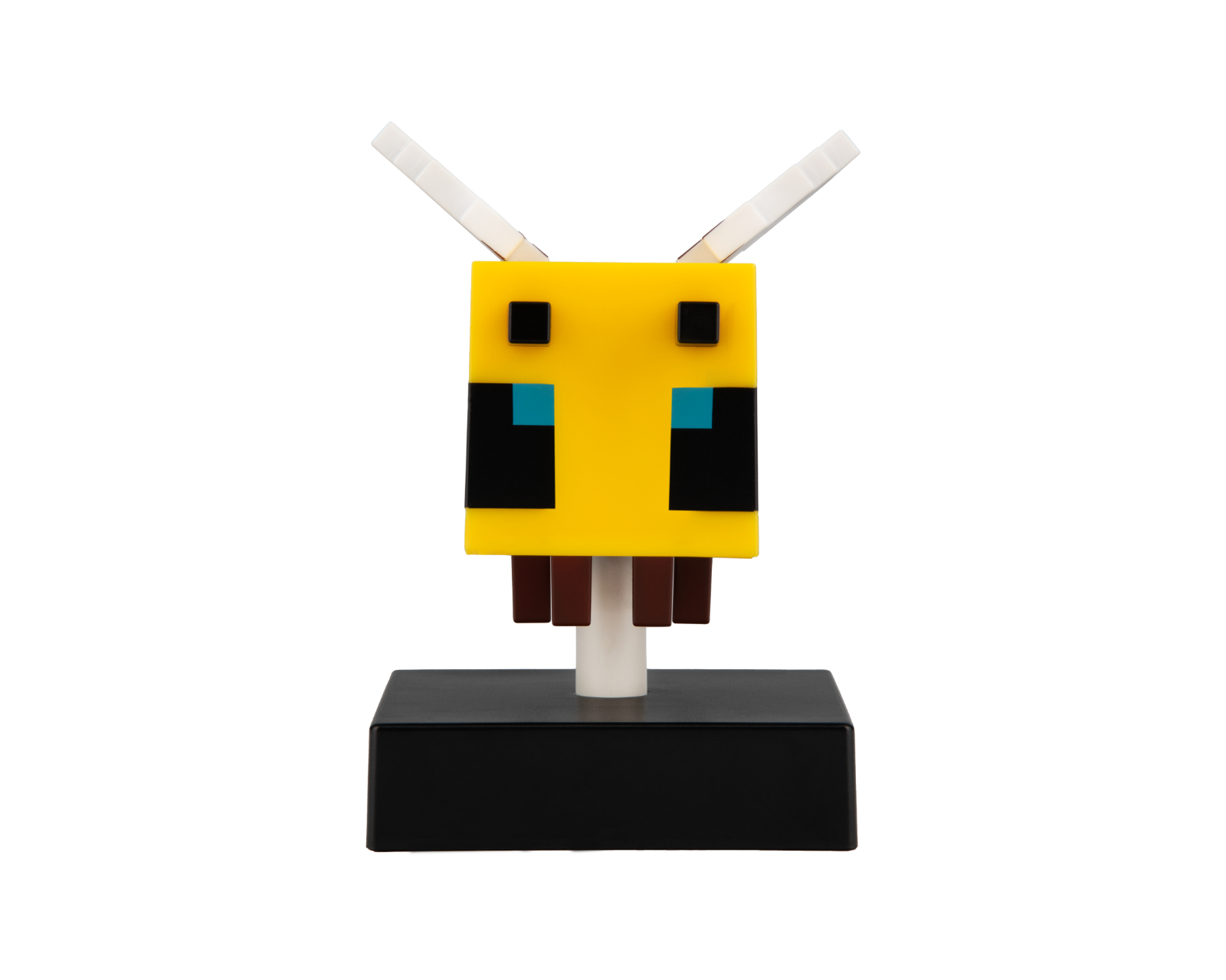 Icon Light - Bee is a lighting product from Paladone that creates a cozy atmosphere in any room. It is designed to resemble a cute bee symbol from Minecraft and stands 11.8 cm (4.3") tall. When turned on, it emits a warm and inviting glow, making it perfect as a night light on a bedside table or as a decoration on shelves.