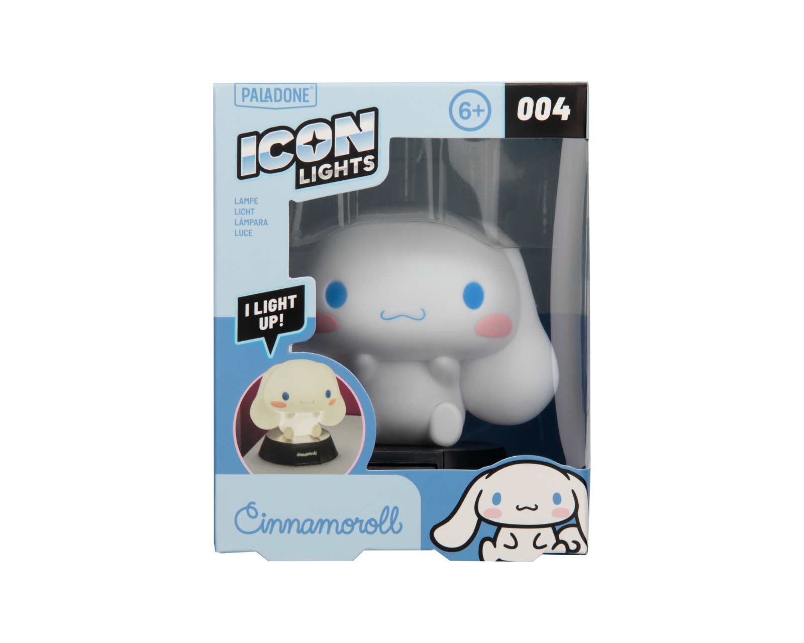 Cinnamoroll Icon Light is a decorative light source from the manufacturer Paladone that combines function and style. This cute figure of the well-known Sanrio character Cinnamoroll measures 9 cm in height and provides a soft and warm glow that is perfect for a bedside table or any room. The light is powered by 2x AAA batteries (not included), making it easy to place without the need for cords.The product is designed with a focus on both aesthetics and functionality, making it an excellent kawaii collectible for your home. Cinnamoroll Icon Light is rechargeable and offers a practical solution for soft lighting, perfect for evening reading or as a calming element in a child's room. Its 3D design and character-accurate details ensure that it is both a functional light source and a cute decorative item. Cinnamoroll is known for its charm, making this iconic lamp also a lovely ornament on the shelf.