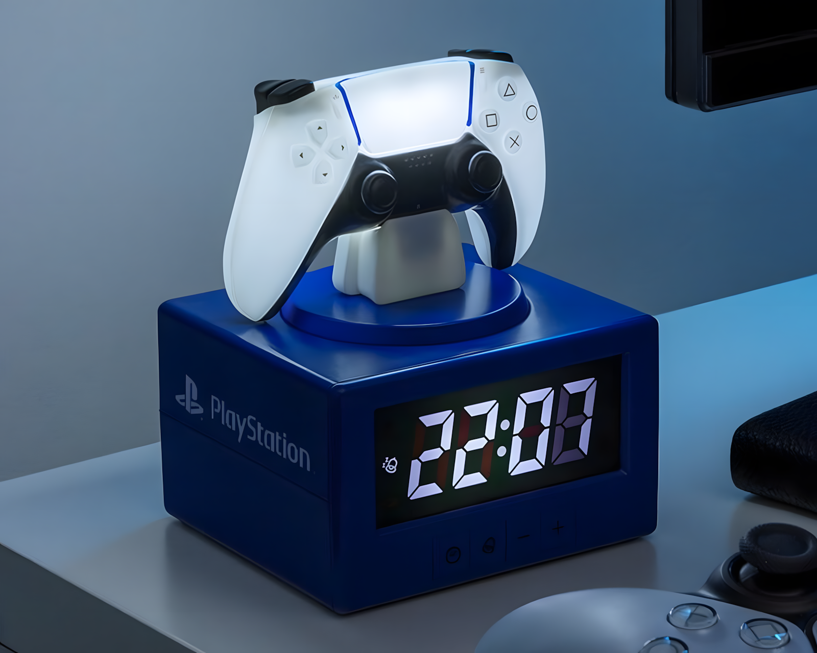 Playstation Controller Icon is an alarm clock from Paladone that combines functionality with an iconic design. Its clear display makes it easy to see the time from different angles, which is practical for all gamers who want a sleek and informative detail in their room. With a height of about 18 cm, this alarm clock is a perfect companion on the nightstand or in the gaming room. It is officially licensed and makes an amazing gift for both gaming enthusiasts and PlayStation fans. The alarm clock is powered by 3x AA batteries (not included). Summary- For gamers and PlayStation fans