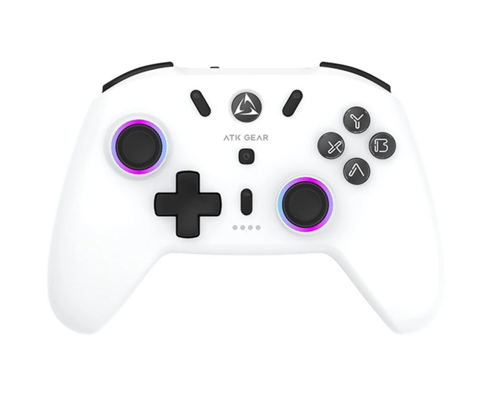AXE Wireless is a gaming controller from ATK designed for use across multiple platforms. It offers tri-mode connectivity with the ability to switch between Bluetooth, 2.4GHz wireless, and USB-C connection. The controller is compatible with Windows PC, Android, Nintendo Switch, and iOS devices and features an ergonomic grip designed for long gaming sessions. The ATK AXE is equipped with Hall Effect joysticks that provide precise control without drift and high input precision. It also has a macro and turbo function that allows the user to program complex actions and perform rapid shots.With support for 6-axis gyro, gamers get enhanced motion sensing, which is particularly useful for Nintendo Switch and compatible mobile games. The controller offers adjustable vibration as well as RGB effects for a customized gaming experience. The device is powered by a long-lasting rechargeable battery and includes USB-C charging.