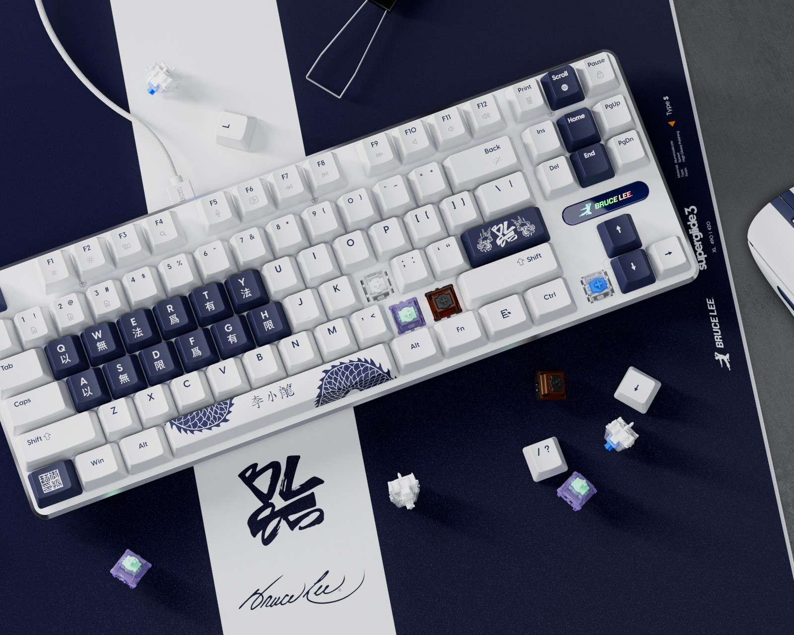 PCMK 3 HE 60 Bruce Lee 85th ED is a gaming keyboard from Pulsar that utilizes Hall Effect technology for precise detection of key presses. It offers a scanning rate of up to 35,000 keystrokes per second and a polling rate of 8,000 Hz, ensuring fast and accurate inputs. This keyboard is designed for gamers who demand high-performance key solutions.The build quality of the keyboard includes a 10-layer PCB that minimizes electrical interference and provides stable input. The device uses linear Gateron x Pulsar magnetic switches with an initial force of 30 ± 7 gf and a total travel of 4.1 ± 0.2 mm. Users can customize the actuation depth between 0.1 mm and 4.0 mm, allowing for individual adjustment according to preferences. The keyboard is equipped with PBT double-shot keycaps for increased durability, as well as an aluminum alloy that enhances stability. It also supports joystick mode for better compatibility with different games.