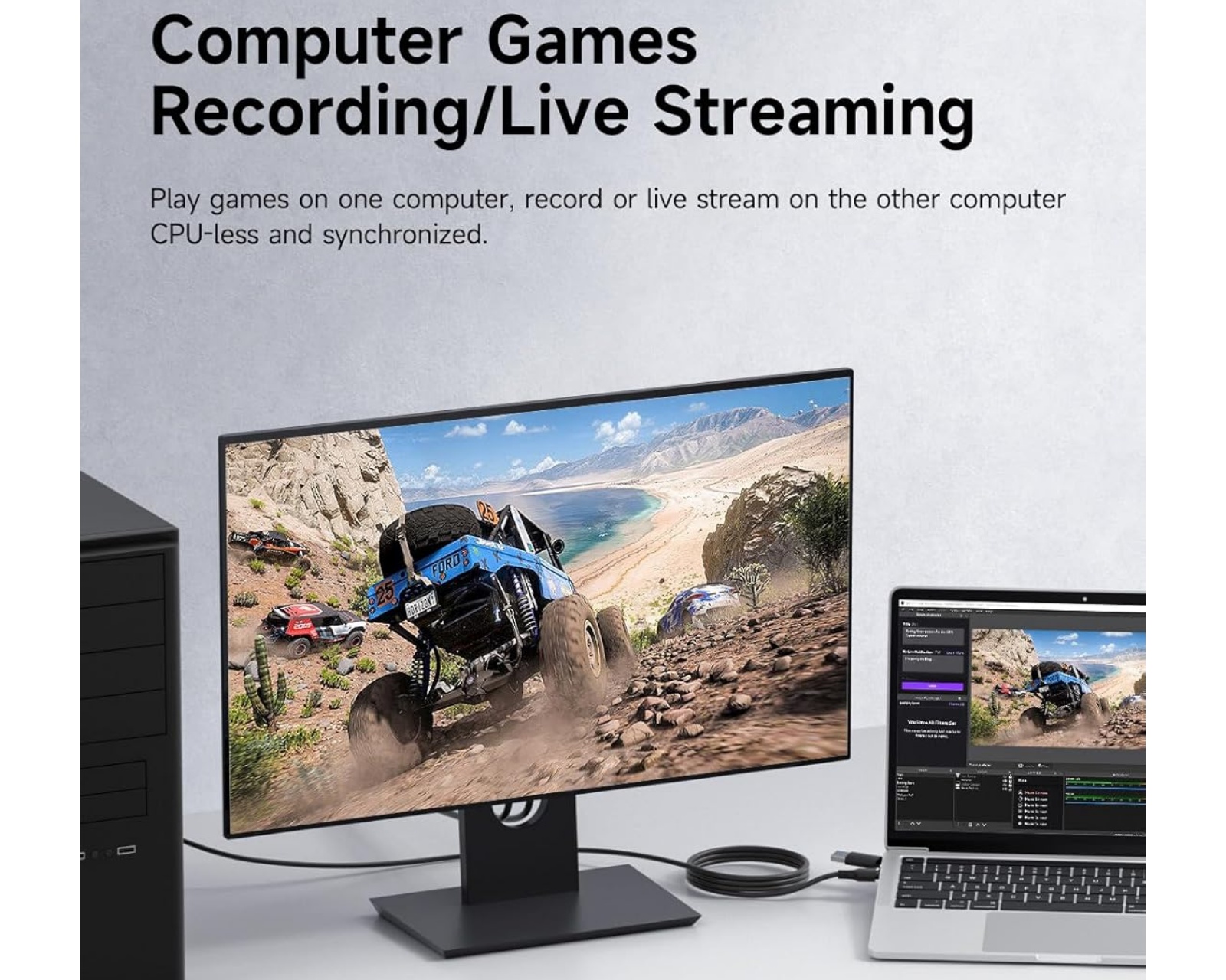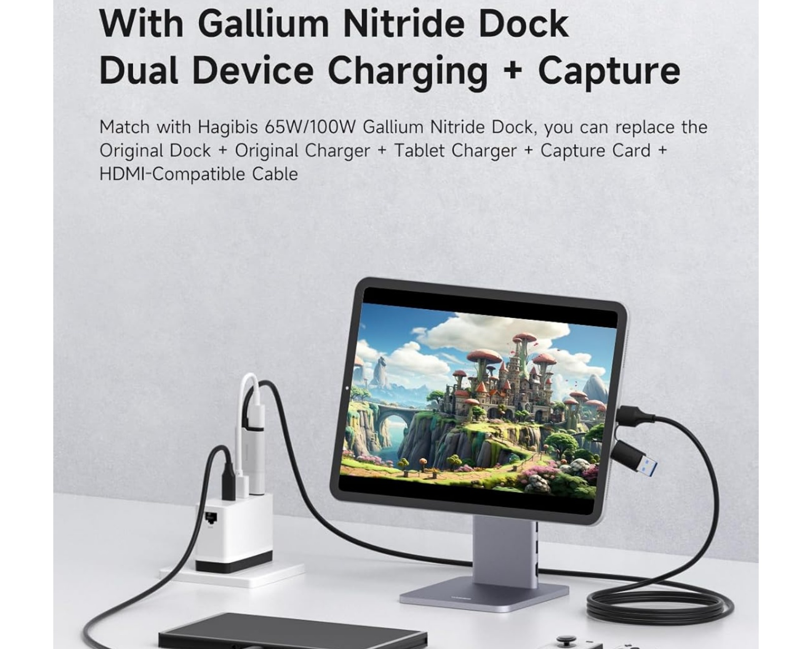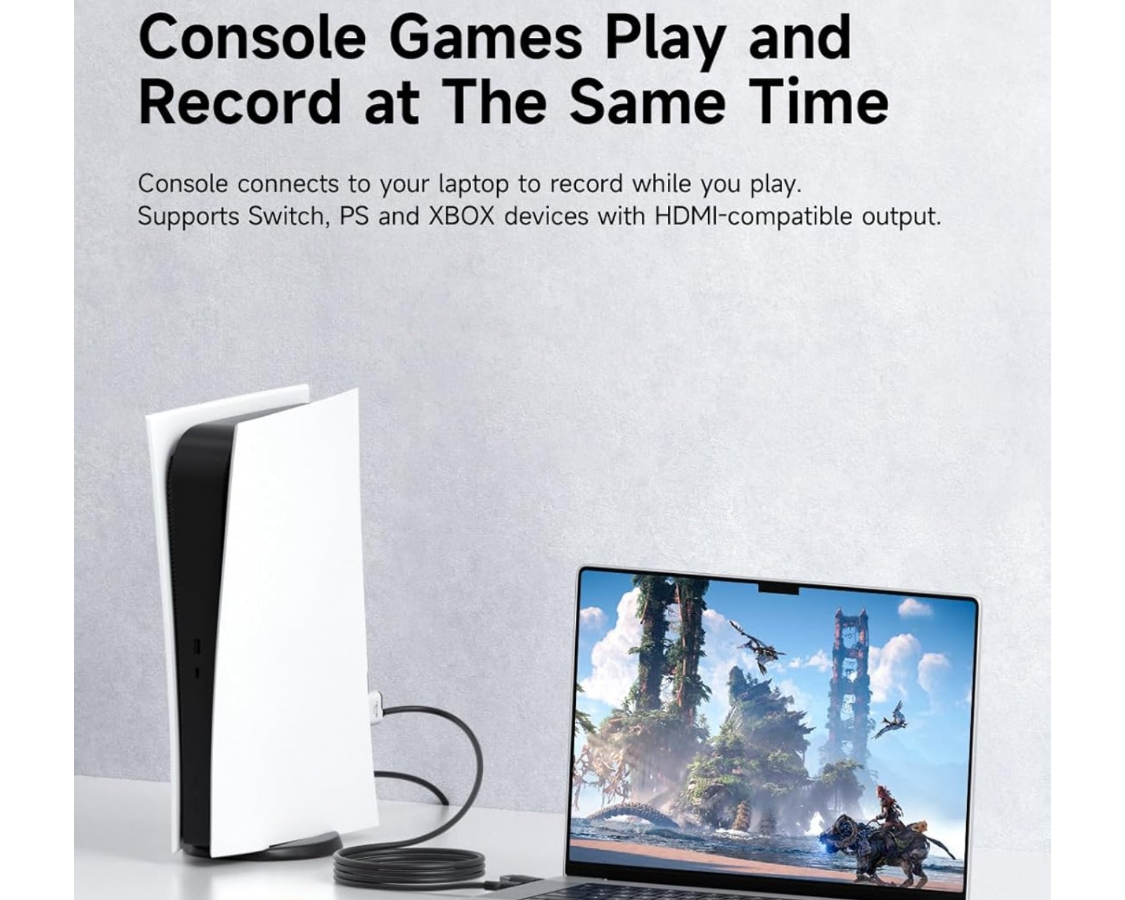 Hagibis video capture card UHC10 is a device for video recording and streaming. It has a dual interface design that allows for both USB A and USB C connections, making it easy to use with a variety of devices such as laptops, mobile phones, and VR headsets. The capture card supports HDMI input and offers 1080P at 60 fps for high-quality recording and live streaming.The build quality is robust and portable, making it easy to use both indoors and outdoors. The device requires no external power supply and works plug-and-play, simplifying the user experience. The Hagibis video card supports 100W PD fast charging which is compatible with Power Delivery 3.0 and Qualcomm Quick Charge protocols, allowing for simultaneous charging while in use. It is compatible with Windows and Mac systems as well as various streaming applications and devices.