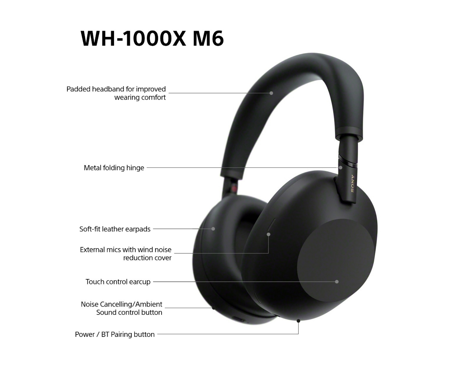 WH-1000XM6 are a pair of wireless over-ear headphones from Sony, designed for a premium audio experience with exceptional noise cancellation and comfort. With the newly developed HD Noise Cancelling Processor QN3, these headphones offer unbeatable sound isolation and crystal-clear audio quality. With up to 30 hours of battery life for all-day use and a quick charge that provides three hours of playback in just three minutes, the WH-1000XM6 is built to keep pace with your lifestyle.The build quality is high with a foldable design and durable metal hinges, making them easy to store and transport. These headphones also feature 30mm driver units that support Hi-Res Audio and DSEE Extreme, providing a refined listening experience. Multi Noise Sensor Technology includes twelve microphone sensors that effectively detect and dampen ambient sound. With Auto-Ambient Sound Mode, you can adjust the sound level according to your surroundings for the best possible balance between music and environment. WH-1000XM6 also offers excellent call quality, thanks to AI-driven beamforming technology.