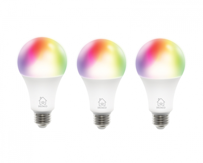 Deltaco Smart Home 3-Pack RGB LED Light E27 WiFi 9W