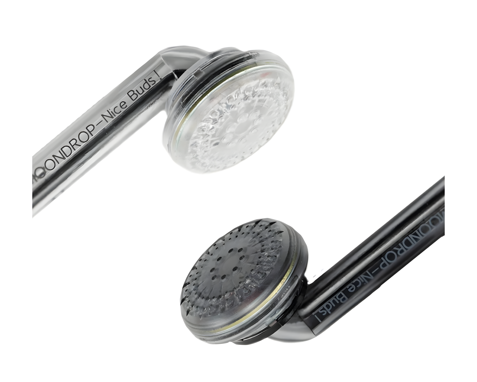 Nice Buds are in-ear headphones from MOONDROP that reintroduce a classic design with modern acoustic solutions. They feature a 15.4mm neodymium dynamic driver that enhances bass reproduction. The design also includes an integrated bass enhancement with an air channel and a multi-driver acoustic front shield to optimize the sound experience.Nice Buds are built with a focus on sound quality and durability. The powerful 15.4mm dynamic driver is carefully tuned to provide a natural and clear sound profile. With a dual rear-cavity damping system, which includes an air channel for bass enhancement and four damping vents, these headphones manage the sound output for bass and midrange over two frequency bands. This design delivers punchy bass without compromising the clarity of the midrange.