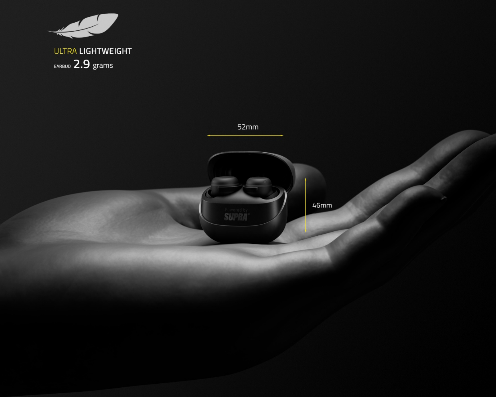 SUPRA ZERO-TX2 Mini TWS are ultra-compact in-ear headphones from Supra. They feature a design that allows for a low weight of only 2.9 grams per earbud and deliver over 25 hours of playtime through the accompanying charging case weighing 30 grams. The headphones are IPX5 certified to withstand sweat and rain, making them suitable for both the gym and work.ZERO-TX2 Mini is constructed from military-grade materials, ensuring durability and robustness. The sound has been developed according to SUPRA's award-winning sound design to deliver powerful and dynamic audio reproduction with impressive bass. Dual ENC microphones with MEMS™ technology help minimize disruptive background noise, providing clear voice reproduction. With smart touch controls, the user can easily manage calls and music, as well as activate voice assistants like Google™ or Siri™. Additionally, the headphones support the TWS Mono function for using one earbud at a time.