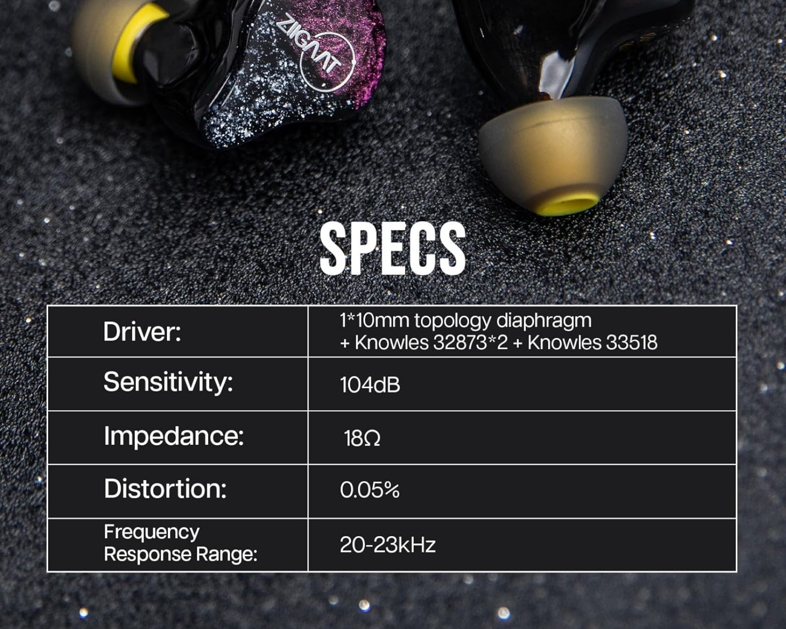 Odyssey is a pair of IEM headphones from ZiiGaat that offers high-quality sound performance. With a configuration of four drivers, including a 10mm dynamic driver and three balanced armatures, these headphones deliver both powerful bass and clarity in mid and high frequencies. The unique topological membrane technology provides a special sound dispersion for maximum sound output. The build quality focuses on durability and sound precision, where the dynamic driver is designed to enhance bass response with the help of nanoparticles in the membrane to increase speed and bass pressure. The American Knowles drivers ensure natural mid-response and high-frequency reproduction of high quality. By adjusting the sound image to suit the human ear, a balance between bass, midrange, and treble is created, making the sound clear and detailed without becoming harsh. Specifications- Driver: 1 x 10 mm Topological Aperture + Knowles 32873 x 2 + Knowles 33518
