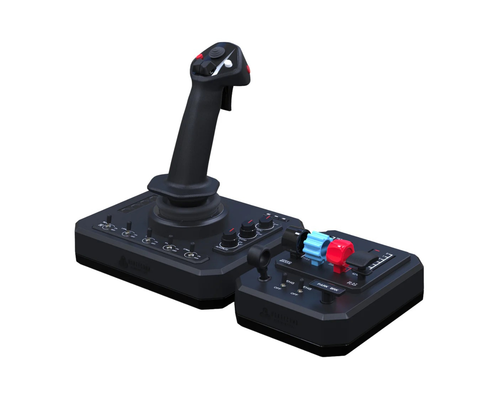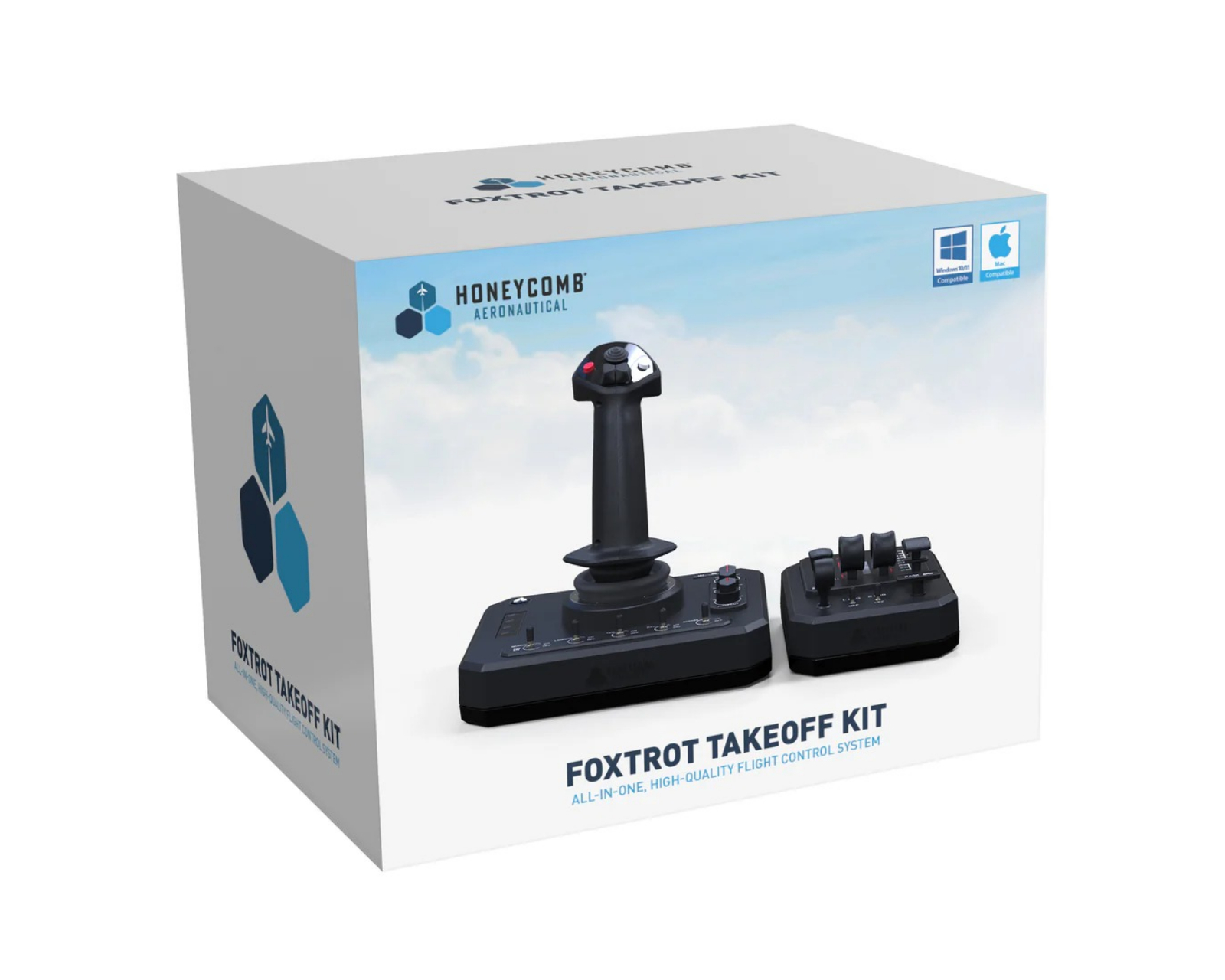 Foxtrot Takeoff Kit is a flightstick from Honeycomb, designed for simulation enthusiasts who prefer this over a yoke. It offers a precision that is crucial for control in popular simulation games such as MSFS 2020, MSFS 2024, and xPlane. With an integrated thrust control box featuring four controls, comprehensive flight management is ensured.The device is engineered to provide a realistic flying experience and is compatible with other Honeycomb products, making it flexible and easy to integrate into existing systems. The sensitive electronics and moving parts are carefully designed with user safety in mind. Software support is provided through drivers and updates available on Honeycomb's website, guaranteeing an optimized user experience.