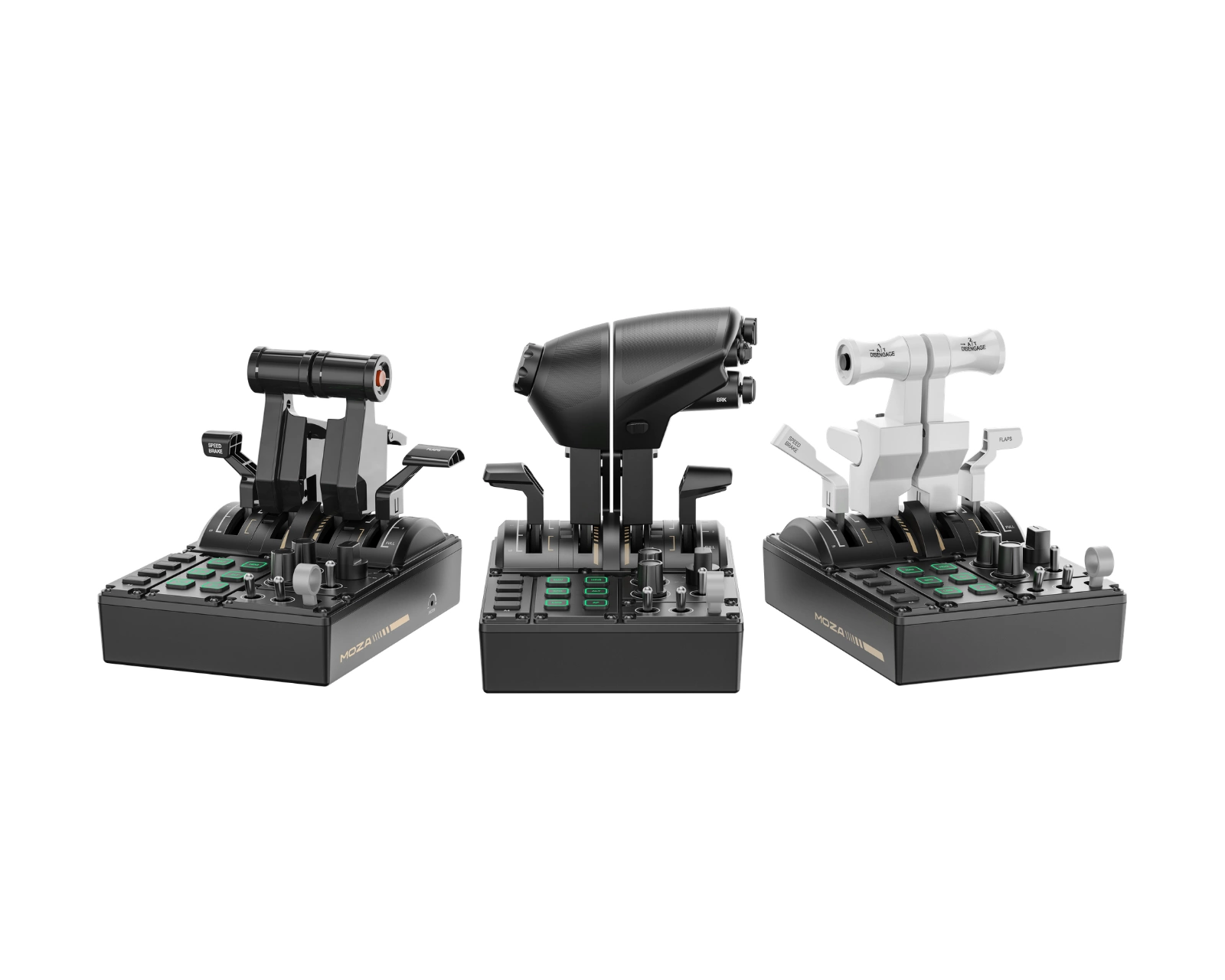 MTQ Throttle TQA Module is a throttle module from Moza Racing inspired by the Boeing B7X series. This module offers an extended forward reach for precise thrust control. It is equipped with an authentic lift-to-arm reverse thrust lever and a TO/GA-style button that provides a realistic feel during takeoff and when deciding to return. The module is intended for simulation enthusiasts seeking a more lifelike experience.The module features robust build quality and is designed to give gamers a sense of authenticity in their flight simulator experience. It is compatible with standard simulation systems and is constructed with high-quality materials that ensure durability and reliability over time. Through the finely-tuned geometry of the lever, users are given the opportunity to set just the right throttle control. The unit has undergone rigorous testing to ensure it meets technical standards for use in professional simulations.