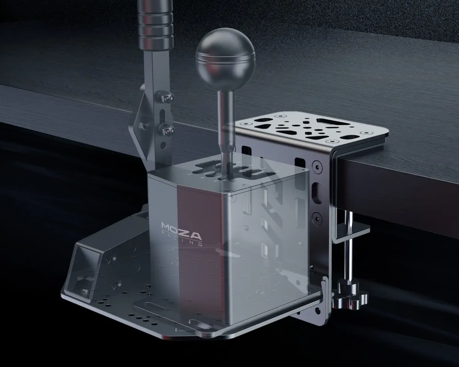 Universal Clamp for handbrake and gear shift is a solution from Moza Racing for smoothly mounting these controls. The product allows for secure attachment to tables or desk surfaces with a thickness of up to 60 mm. The robust design of the clamp provides stability and durability, which is essential for gamers seeking optimal performance during use.The construction of the Universal Clamp is made of high-quality steel, ensuring excellent durability and reliability. It offers easy installation without the need for modifications, making it user-friendly for various setups, including aluminum profile rigs and other DIY solutions. Mounting is possible via a powerful clamping system that prevents unwanted movement of the controls and allows for height and angle adjustment of the handbrake for better ergonomics. The clamp is designed to provide a stable base even during intensive use.