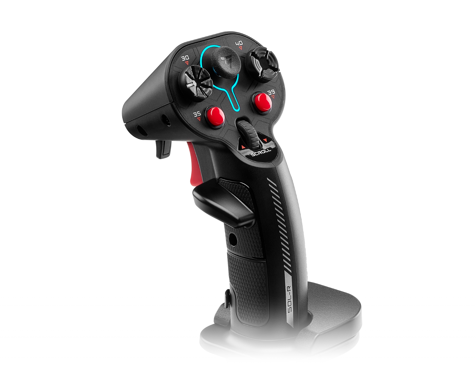 Sol-R 4 HOTAS is a joystick and throttle from Thrustmaster, designed to dominate the skies and provide gamers with a superior control experience. This HOTAS (Hands On Throttle and Stick) combines an ambidextrous joystick with a precision throttle, allowing for accurate maneuvers with 16-bit Hall effect sensors for the X, Y, and Z axes. With a total of 58 action buttons, this device is perfect for intense flight simulations and combat scenes.Built for long-term use, the Sol-R 4 offers a robust construction with an ergonomic design for comfortable use during extended gaming sessions. The joystick has 21 functions on the grip, including multiple triggers, hat switches, and a thumb wheel. The throttle features an adjustable sink and a travel distance of 80 mm, providing players with smooth yet precise control over thrust and maneuvering. The base also includes switches and pads with customizable RGB lighting options, ensuring that all controls are within reach for optimal performance.