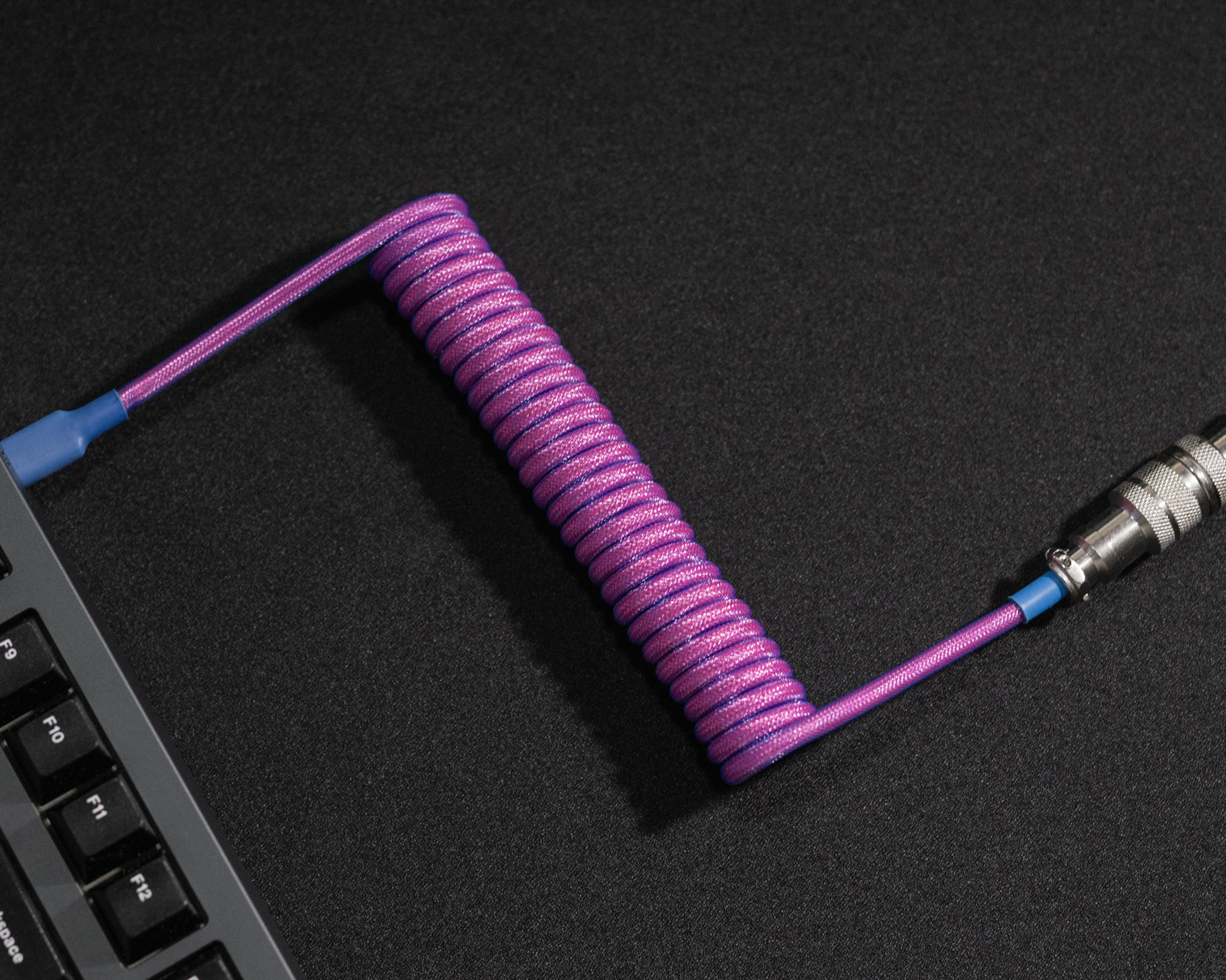 An affordable premium coiled cable that is functional, durable, and stylish. The cable fits most USB-C keyboards and USB-C sockets. The connection of the cable is a 4-pin aviator of metal. This robust connector has a classic design and provides a perfect connection every time.The cable can be found in most colors so you can be sure to find just the cable that complements your setup the best.