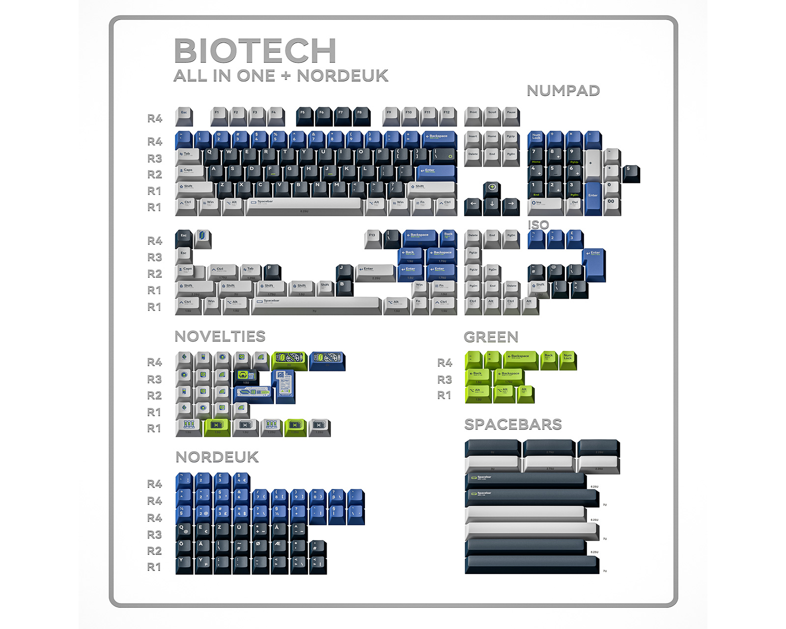 The design of the BIOTECH keycaps is inspired by the biotechnology company in the "Cyberpunk 2077" game. A company specializing in genetic engineering and biotechnology, pharmaceuticals and microbial research is shaped into the theme of the keycaps, adding a touch of cyberpunk science fiction, which has a very strong technological visual impact.- Manufacturer: ALOHAKB