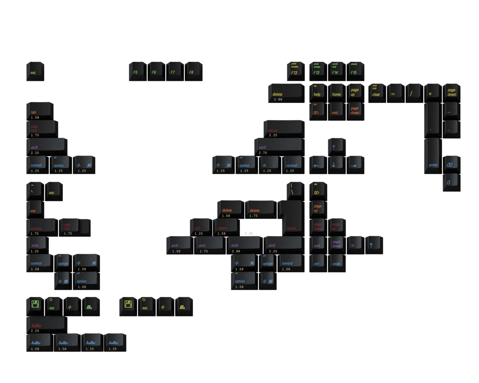 The much-loved Apple Extended Keyboard (AEK) features this iconic, italic font that has stood strong as a modern and retro take on legends in the keyboard space.Modkit in a range of different colors to create a stylish combination in retro style.