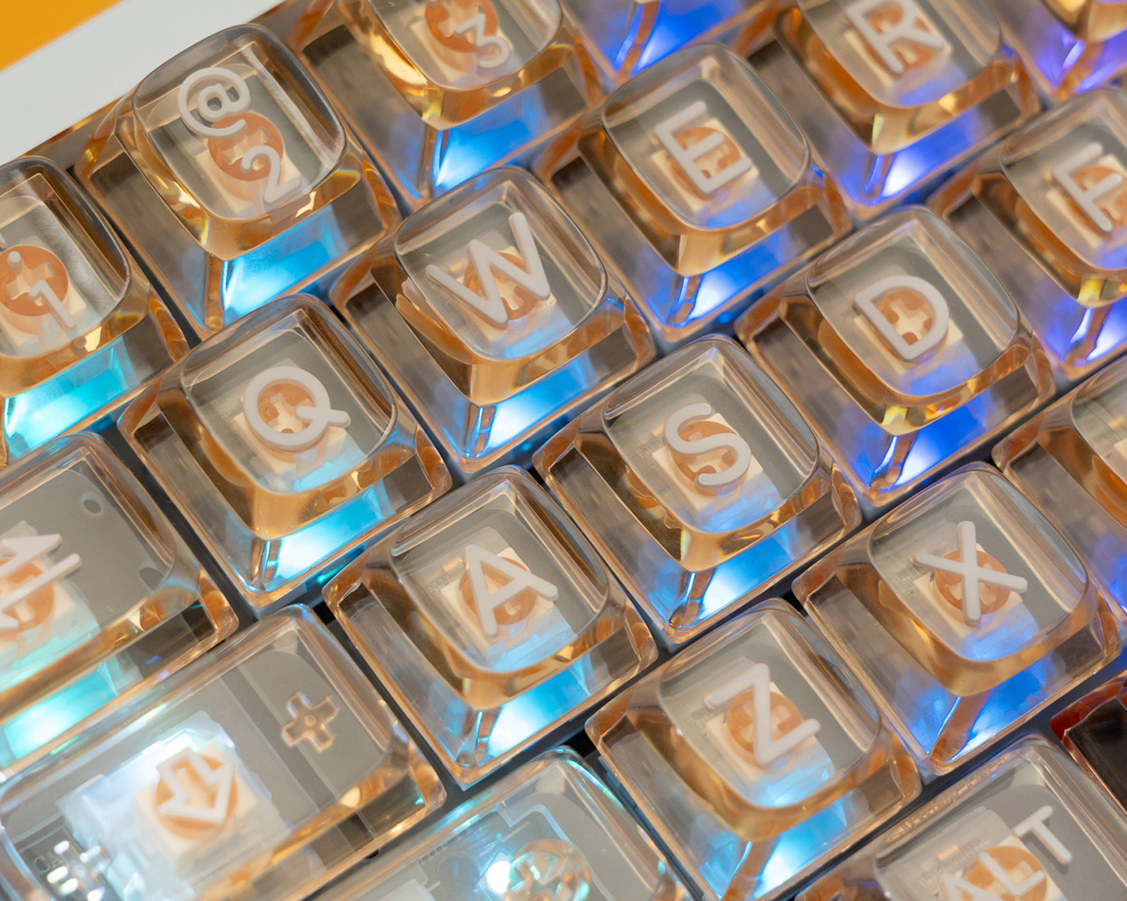 Made of premium PC material, these keycaps are crystal clear, elegant, and durable. The keyboard maintains its glamour, with lettering that remains pristine for years.Suspended 3D legend, more wear-resistant