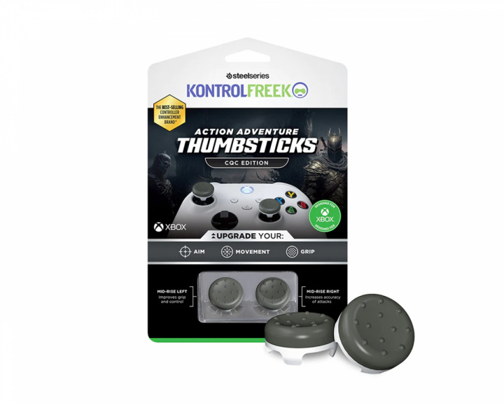 Kontrolfreek CQC Gray Thumbsticks offer players of all skill levels a unique way to play. The medium height sticks provide increased comfort and control when playing with your favorite controller. The CQC Gray has a unique design that gives more grip to the thumb and is the perfect way to maximize player performance. Perfect addition for your Xbox Series/Xbox One controller.Left Stick: