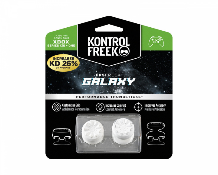 Galaxy boasts a beautiful white-on-white color scheme with an original laser etched design that offers exceptional grip. With a versatile dual-height combination, Galaxy stands up to the grueling demands of competitive online play, whether you’re fighting for the battlefield, the city, or the universe.A love letter to shooters, FPS Freek Galaxy combines one high-rise stick designed for precision aiming and one mid-rise stick for extra grip and comfort. The laser-etched design features ridge detailing to keep the thumb centered and added grip for movement in all directions.