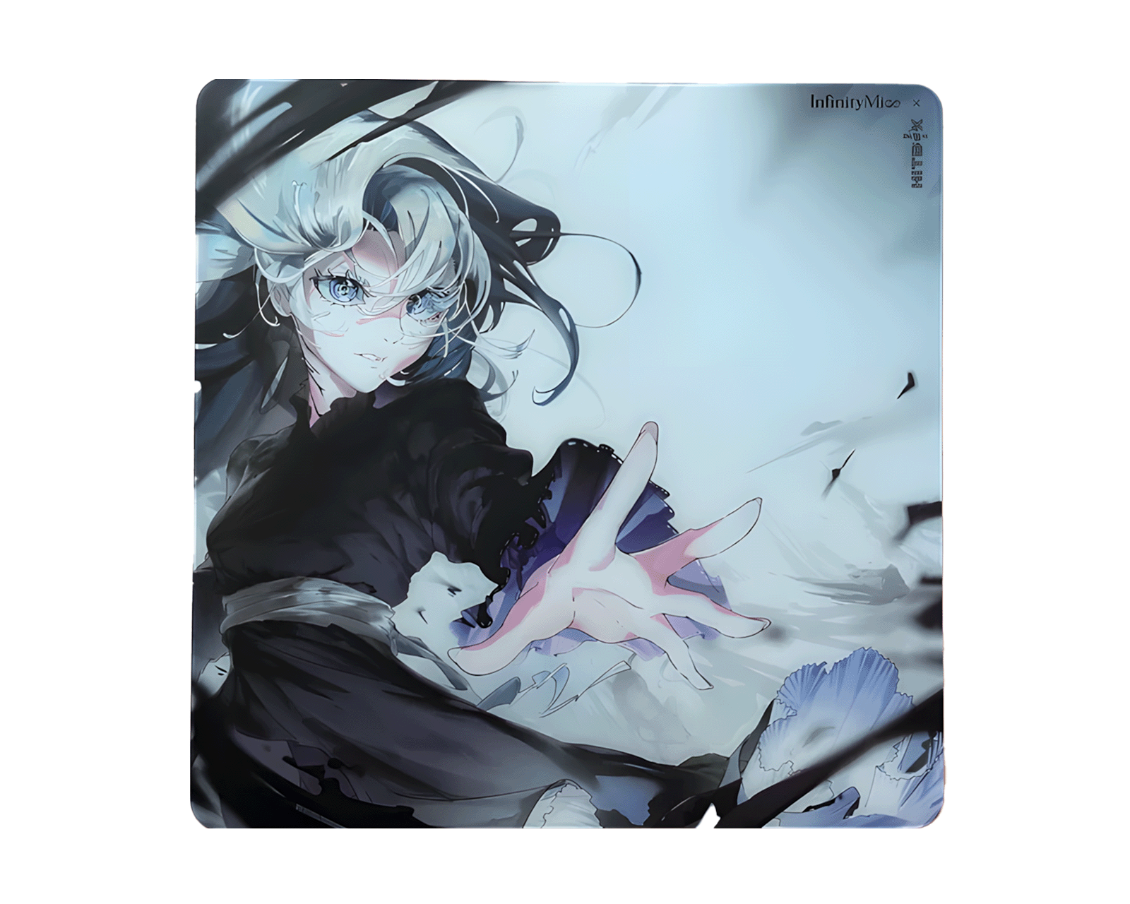 x HITBOX Studio - Wisteria Glass Mouse Pad is a mouse pad from InfinityMice that offers a glass surface for smooth and consistent gaming. With an XL size of 490 x 490 x 3 mm, and a non-glossy, non-coated surface, this mouse pad is designed to provide a balanced speed glide without disturbing movements during gaming. The mouse pad also includes a limited edition keychain.The mouse pad is made with a custom blend of materials to ensure that no unwanted movement occurs during gameplay. The glass surface allows for perfect dynamic friction, which improves precision and speed when the gamer uses the mouse. With a thickness of 3 mm, the product also provides sufficient stability for intense gaming. The mouse pad has undergone numerous tests to ensure that it maintains its properties regardless of the playing time.