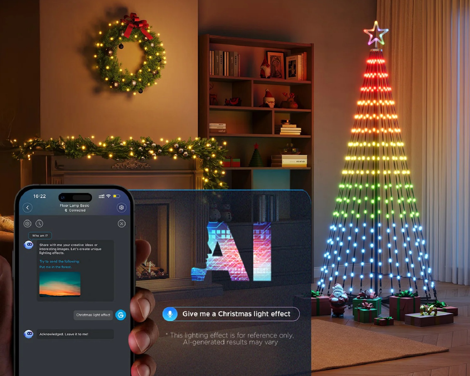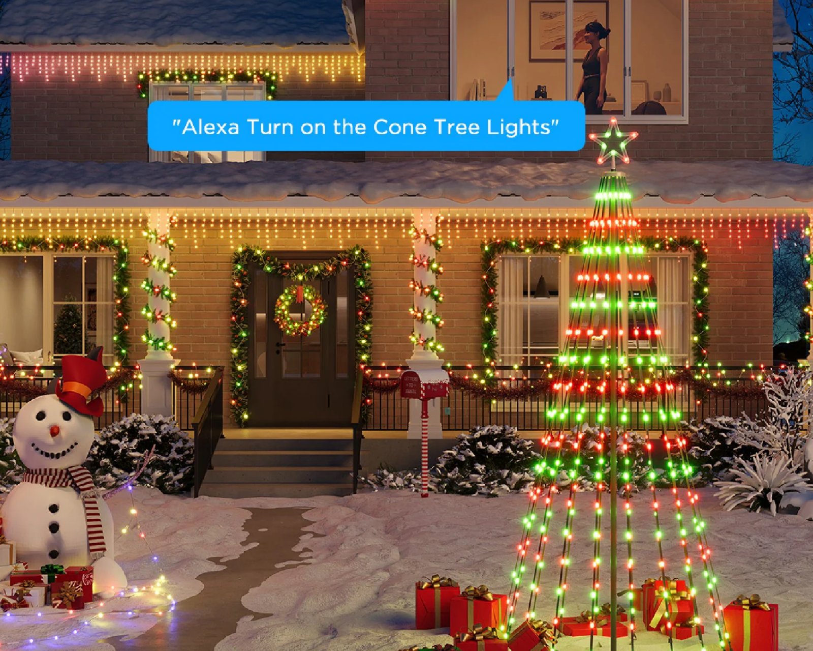 Cone Tree Lights is a light decoration from Govee that mimics a Christmas tree and creates a festive atmosphere in all environments. These lights are designed to easily create a cheerful and cozy atmosphere during the holidays with smooth installation and smart control options. With support for RGBIC technology, these lights offer over 16 million colors for customization and can be controlled via the Govee Home App.The lights are built to withstand outdoor use and have a protected design against wind and are IP67 waterproof, making them resistant to both rain and snow throughout the winter season. With 82 preset scene modes, the light can be tailored for different occasions and the built-in microphone allows them to sync with music without extra equipment. There are also AI-based features for creating customized light effects.