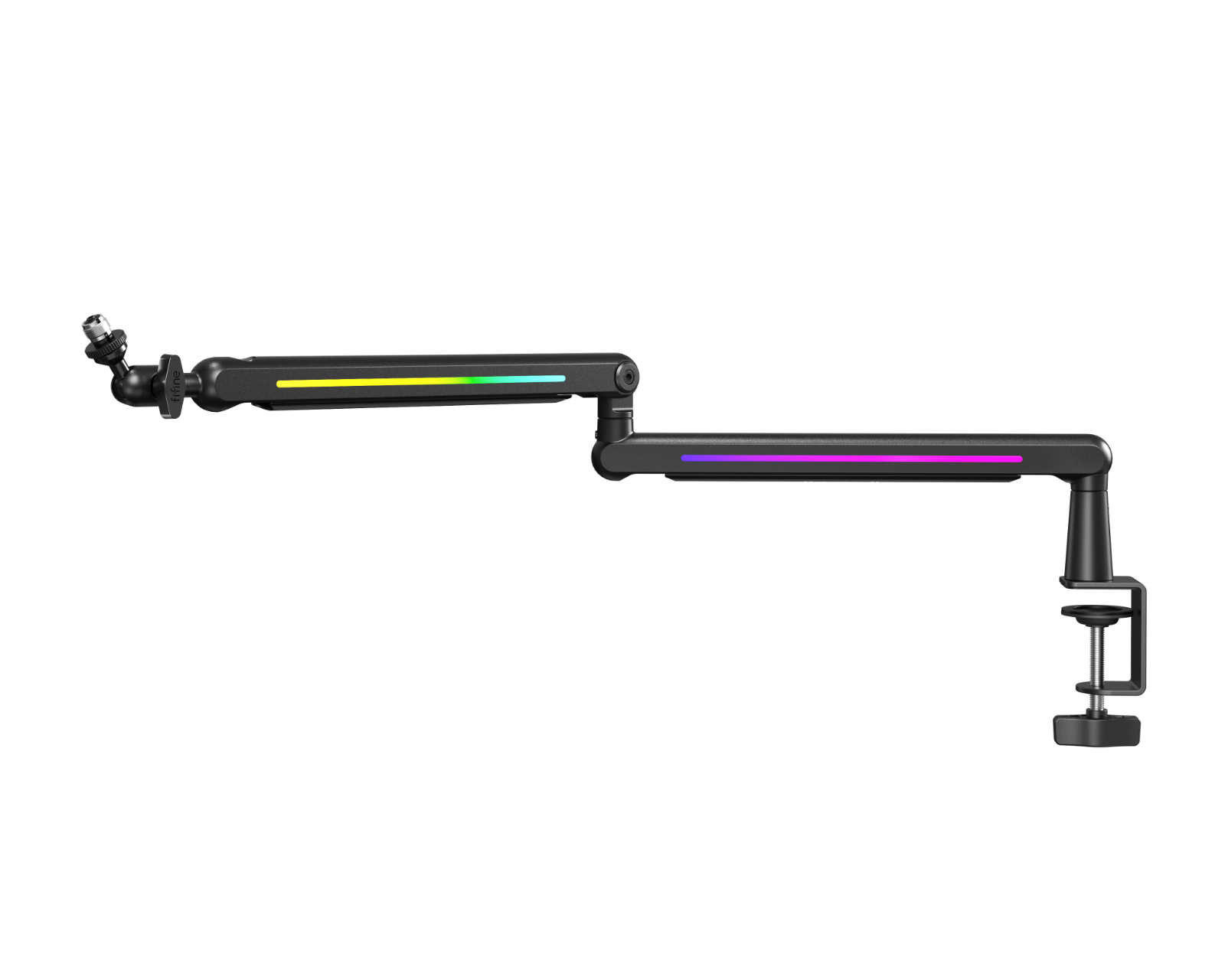BM88 Pro is a microphone arm from Fifine. It features a high-profile design that enhances your streaming and recording environment. The device is equipped with a 360-degree rotating microphone holder that ensures a seamless recording experience. The microphone arm is designed to fit most desks and workbenches with its 3/8" and 5/8" adapters.It is compatible with popular microphones such as HyperX, Blue Yeti, Shure SM7B, and Rode, making it versatile for various applications. The adjustable design includes a rotating and swiveling ball joint for easy adjustments, providing a tilt from -90° to +90° and full 360° rotation. Integrated cable management is also included for an organized workspace.