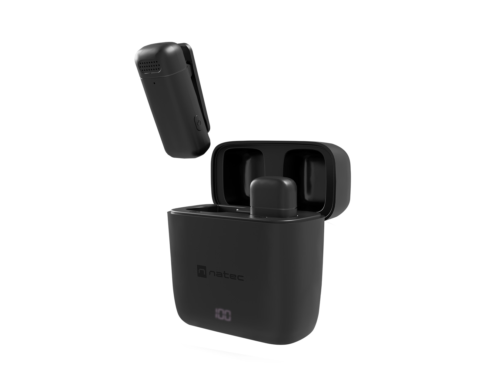 The Natec Hopper Lavalier Microphone is the perfect solution for gamers and tech enthusiasts who want to take their audio to the next level. When your smartphone's internal microphones aren't enough, especially for wider shots or when your phone is mounted on a tripod, this microphone delivers professional sound quality and stability. With a simple, wireless design that operates in the 2.4 GHz band, you get reliable audio transmission even at distances of up to 30 meters. Plus, the compact and durable charging case means the wireless microphone is always ready to use, while being easy to carry in your pocket or backpack.With a battery life of up to 4 hours, the Natec Hopper wireless lavalier is great for longer recordings, while the charging case with a capacity of 200 mAh ensures that you always have the option of an extra charge. The built-in ENC (Environmental Noise Cancellation) technology minimizes background noise for crystal-clear sound. With a sensitivity of -38 dB and a frequency range of 20 - 20000 Hz, the small microphone captures details with precision, while the maximum sampling rate of 48 kHz produces professional results that impress.