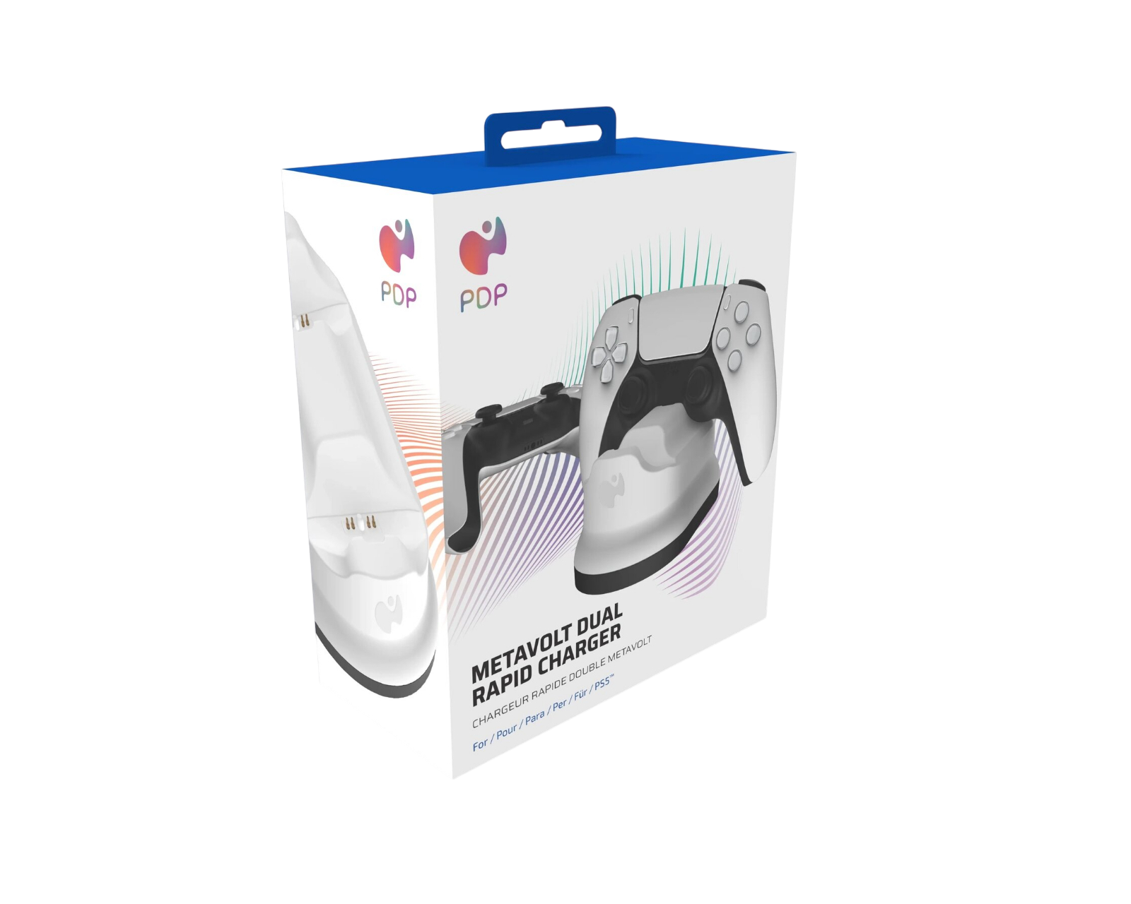 Metavolt Dual Charging System is a charging station from PDP for wireless PS5 DualSense™ controllers. The system enables fast charging of up to two controllers in less than four hours. It is designed for gamers seeking an efficient and stylish way to manage their controllers' charging. The charging station features a design with a color-coordinated finish that complements your gaming setup.With one-handed drop and charging functions, controllers can easily be attached to the station after playing. The non-slip rubber grips on the bottom of the charging station ensure stability when the user places or picks up the controllers. The Metavolt system is constructed to be both functional and aesthetically pleasing, making it a great option for the home or gaming room.