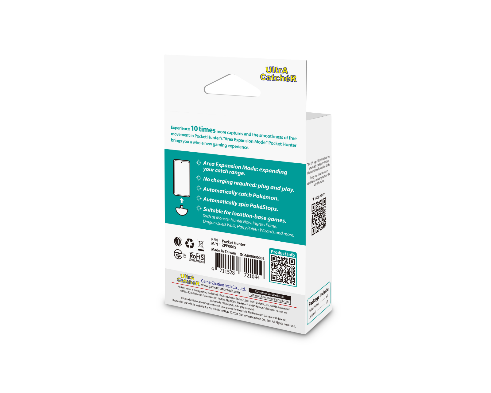 Pocket Hunter is an auto catch device from UltrA CatcheR that facilitates the automation of gameplay functions in popular augmented reality (AR) games. The product is designed to simplify the gaming process by automatically tracking and catching characters during exploration. Pocket Hunter easily connects via USB-C and requires no charging, allowing gaming to begin immediately. Its compact and lightweight design makes it ideal for use during long walks or urban adventures.A built-in passthrough port allows for simultaneous charging of the phone while playing, with a capacity of 5V/1A. The device features smart LED pairing that indicates connection status with green flashing for unpaired and purple for paired devices. The unit's build quality focuses on durability and user-friendliness. It is optimized for mobile gaming and includes an energy-saving LED feature that dims after three minutes of inactivity. Therefore, it is suitable for both casual gamers and those looking to enhance the efficiency of their gaming.