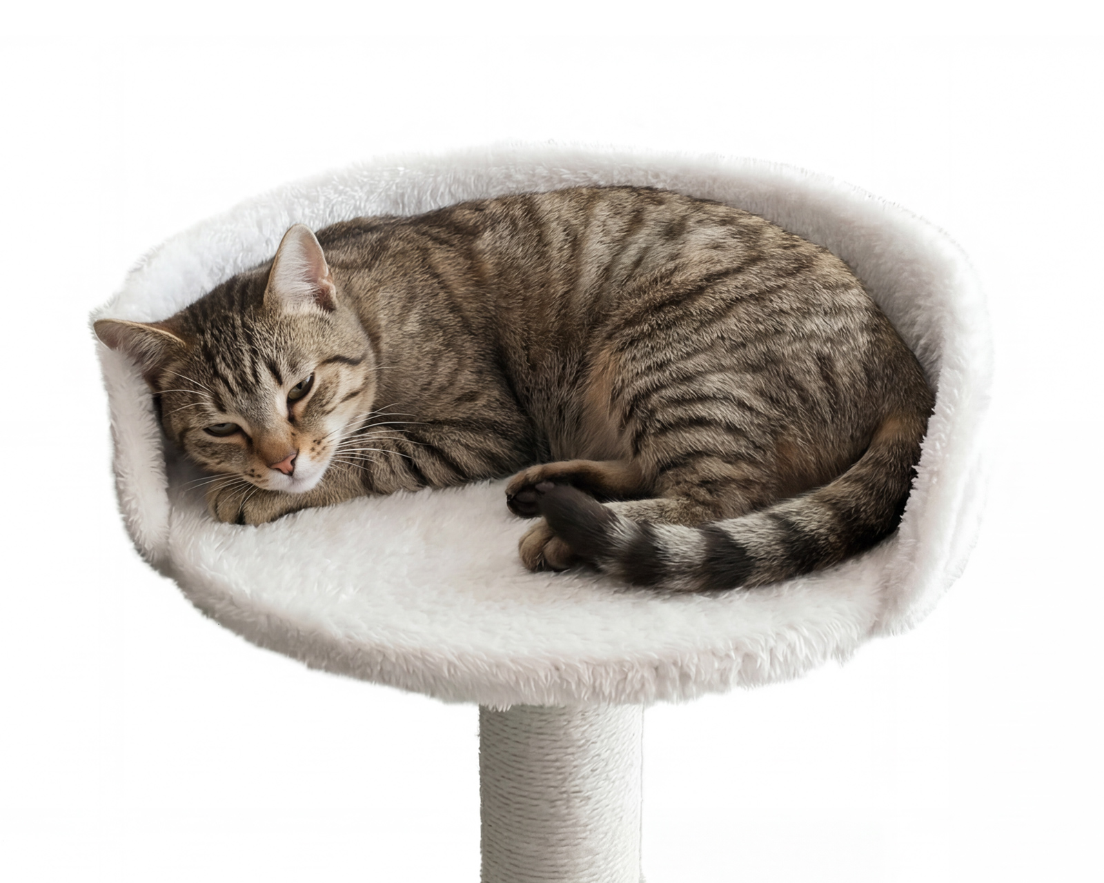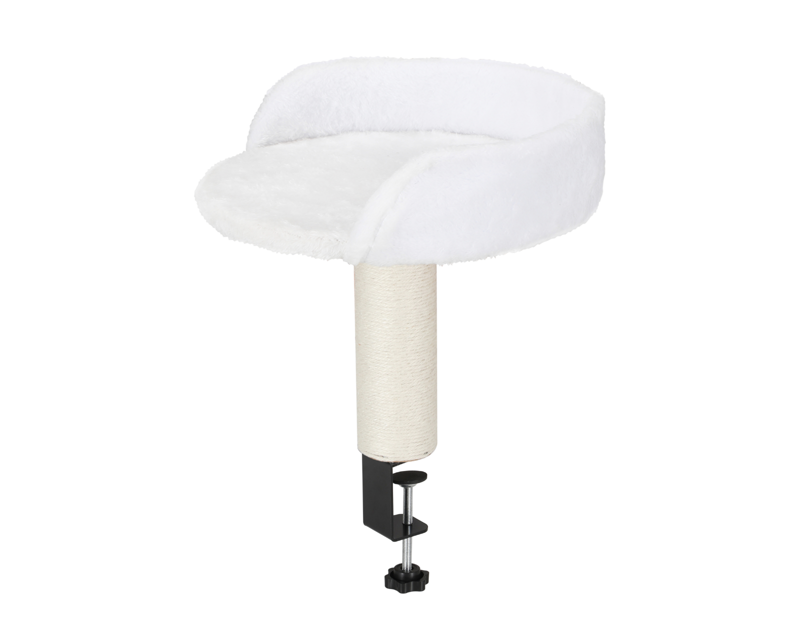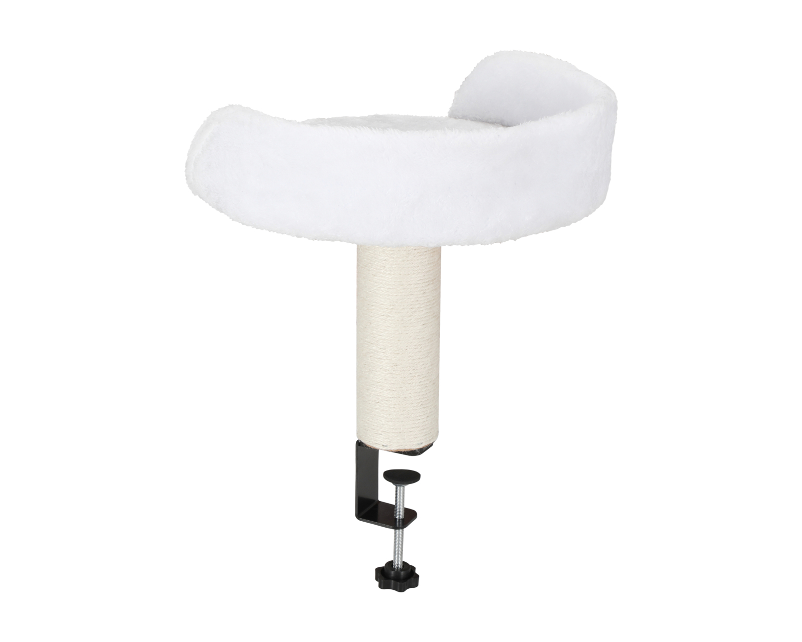 Board-mounted cat bed is a cat bed from MaxMount that attaches to the desk with a clamp. This design allows the cat to stay close to the user while working or gaming, creating a safe and comfortable place for rest. The cat bed has a diameter of 30 cm and a height of 29 cm, and is made from high-quality materials that ensure both comfort and durability.The material choice prioritizes softness and support for the cat, making it a usable solution for cat owners. The clamping system enables easy installation and removal without damaging the desk surface. The construction also ensures that the bed remains stable during movement, benefiting both the user and the cat. The neutral white color offers an aesthetically pleasing finish suitable for both home and office environments.