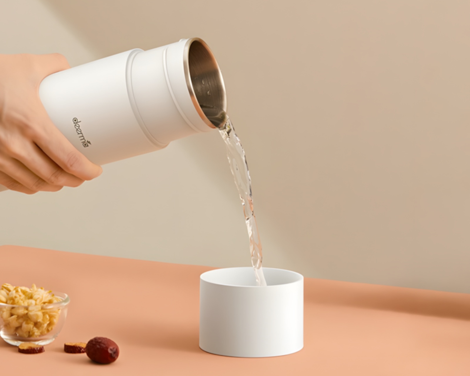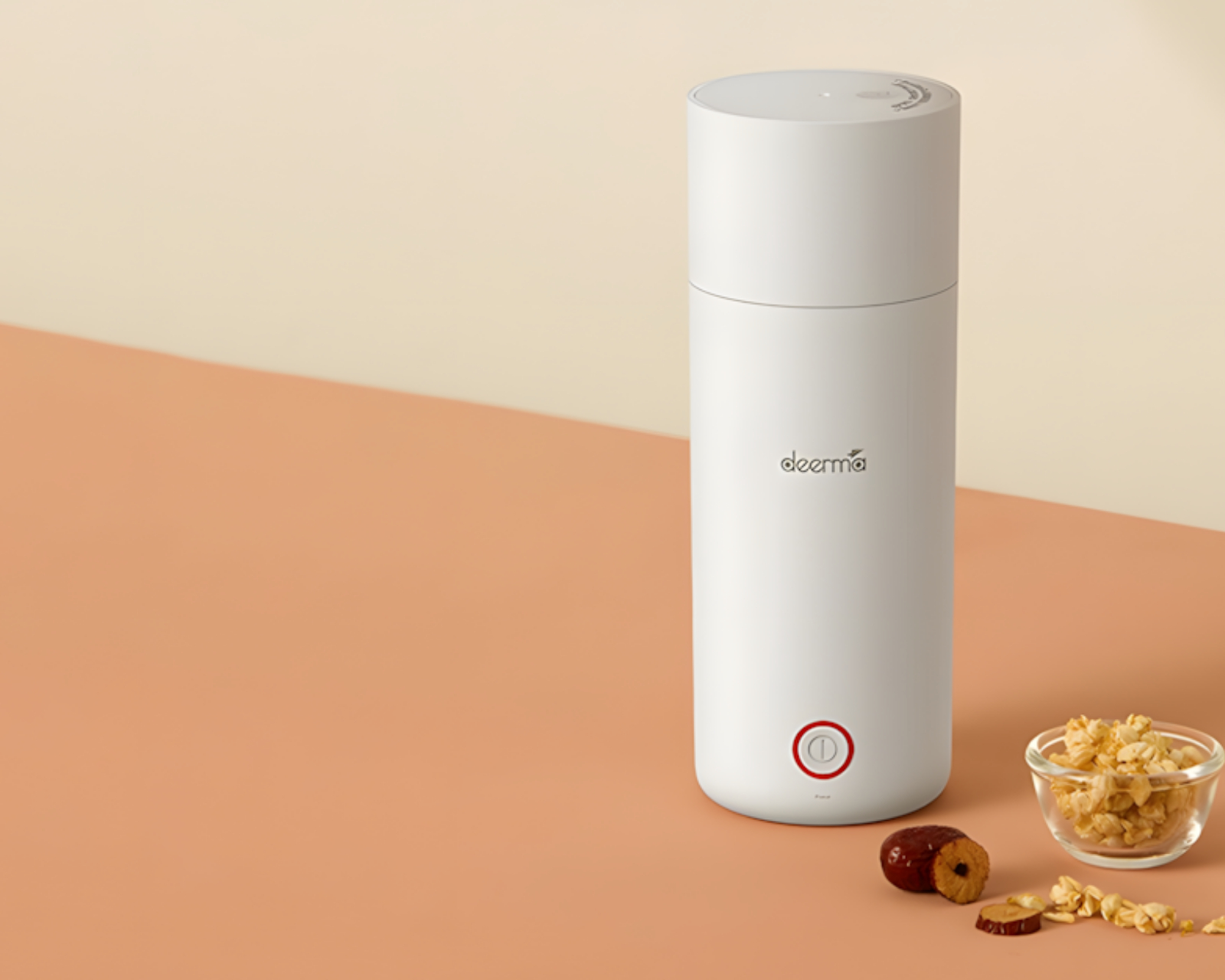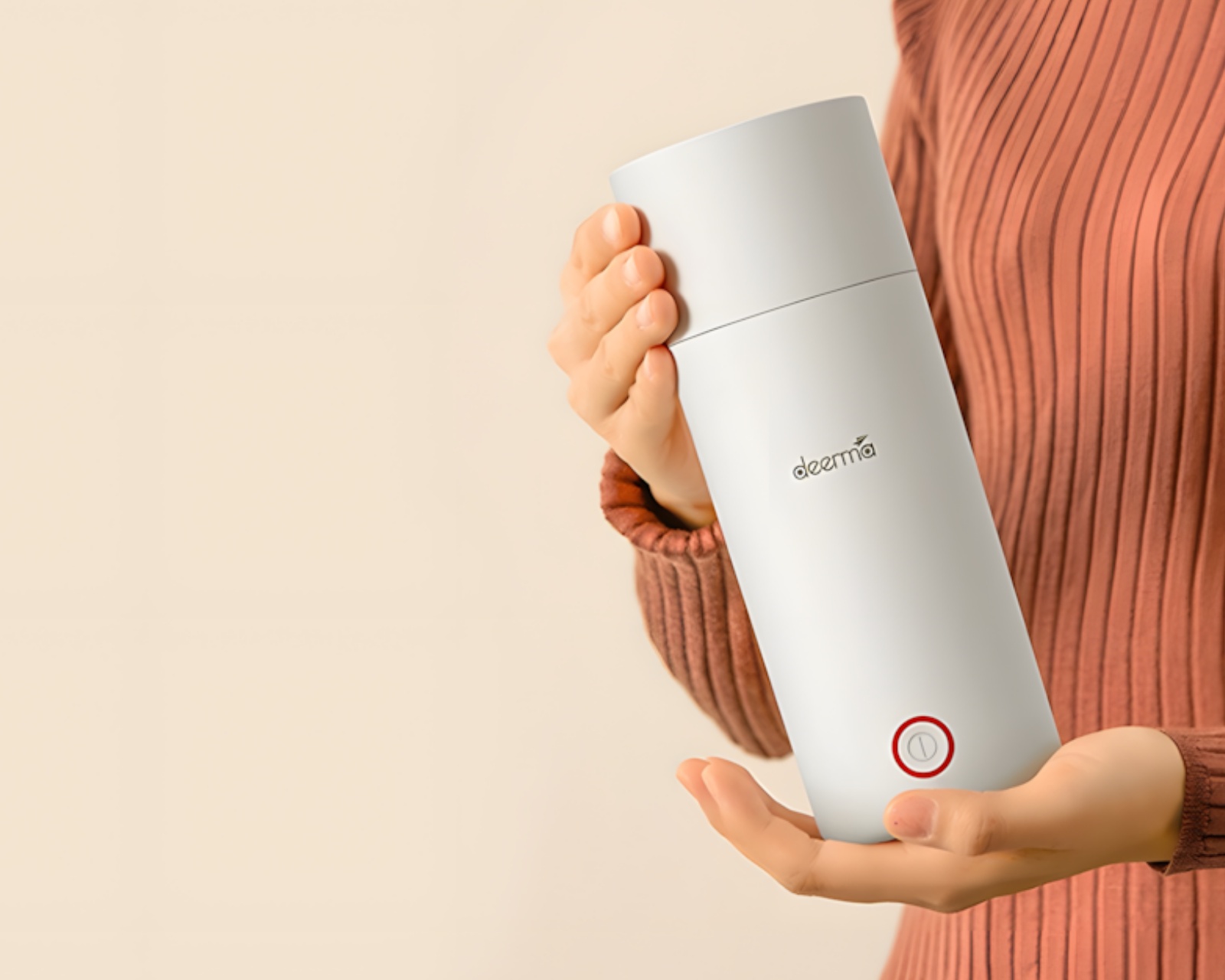 A practical kettle from Deerma that offers both boiling and thermal functions in a compact unit. It has a capacity of 350 ml and is made from durable 304 stainless steel, ensuring long-lasting use. The product is designed to be lightweight and portable, making it ideal for use at home, in the office, or while traveling.The unit is equipped with three layers of thermal insulation, allowing the hot contents to retain their temperature longer when unplugged. It also features a safety valve system with three valves to ensure efficient evaporation and increased safety. The one-button technology makes it user-friendly, and the non-slip silicone base ensures stability during use. The cords are removable for easier transportation and storage.