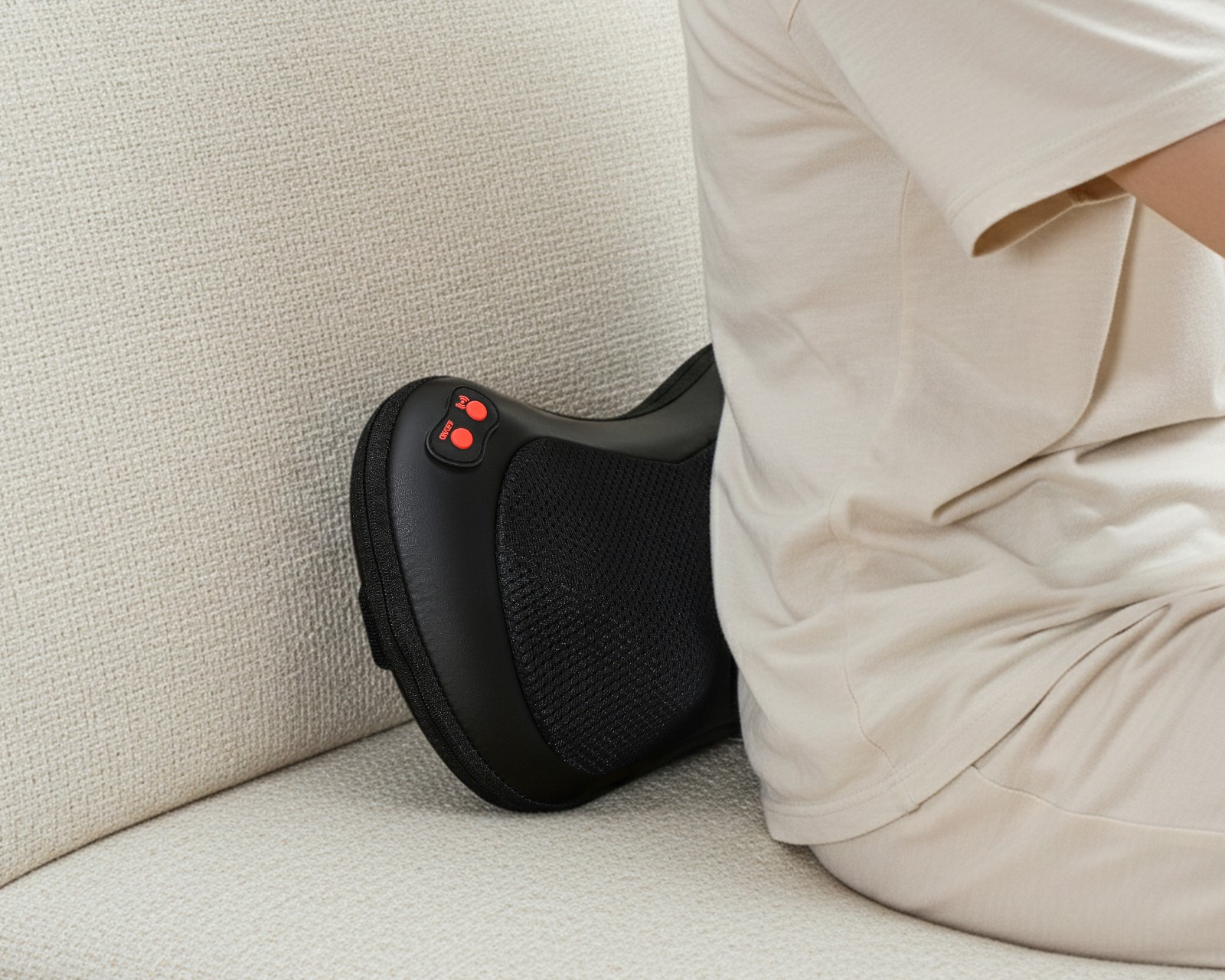 Massage pillow for back & neck is a popular product from MaxLife that combines an innovative remote-controlled shiatsu massage with user-friendliness. It is specially designed to relieve tensions in the neck, shoulders, back, and legs, allowing users to enjoy a relaxing massage at home or on the go. With four massage heads working in a deep-tissue pattern, this massage pillow effectively loosens stiff muscles. This massage pillow is designed with an elastic strap that allows it to be easily attached to a chair or used on various parts of the body. The three speed settings give users the option to customize the massage intensity according to their preferences, while the heat function, with a constant temperature between 38-42 °C, provides extra comfort and effectiveness. The product is also safe with automatic shut-off after 15 minutes. With a voltage of 12V and a power of 24W, it ensures reliable and powerful performance. The massage pillow also comes with a 12V adapter for convenient use in the car, making it ideal for longer trips or during sitting jobs. Summary- Remote-controlled shiatsu massage pillow for back and neck