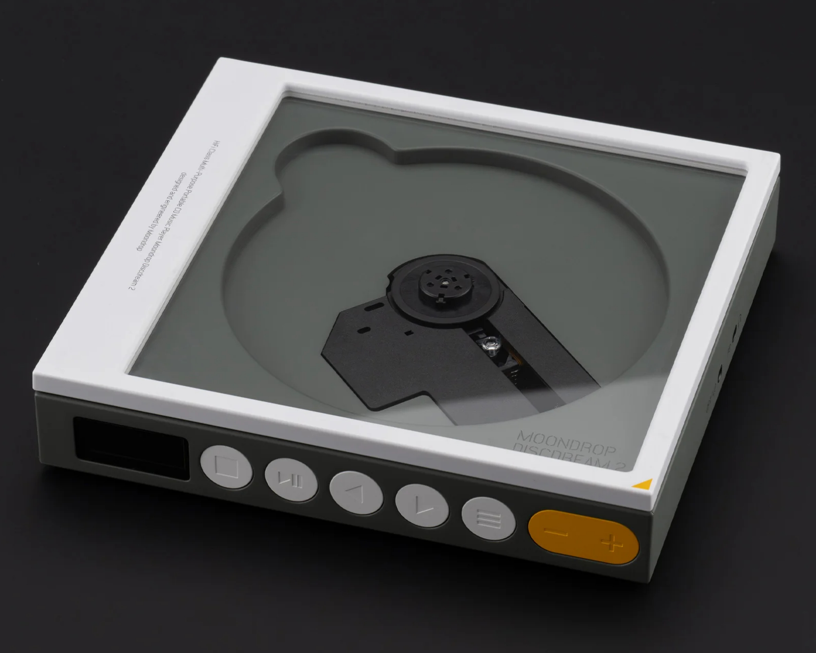 Discdream 2 is a portable HiFi CD player from MOONDROP that combines modern technology with classic sound quality. It offers support for multiple CD formats and has a battery capacity of 3500mAh, providing a long battery life of up to 9 hours. With a USB-C charging port, it enables convenient and fast charging.The device is built with a focus on sound performance and construction, allowing it to meet both modern measurement standards and previous listening traditions. DISCDREAM 2 has an output power of 124mW at 32Ω and supports USB audio up to 11.2896MHz for high-resolution audio playback. It also has a compact design, making it easy to take with you.