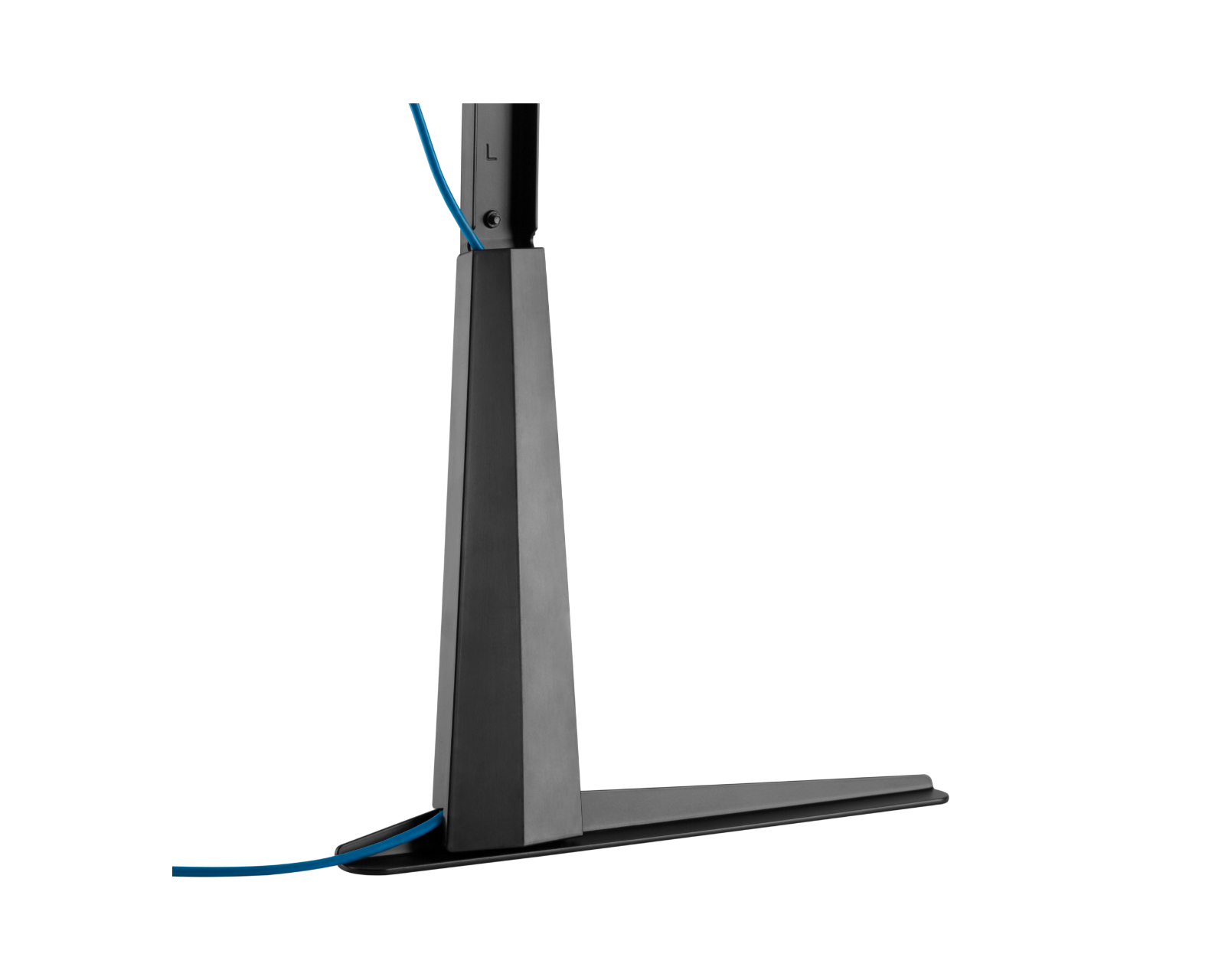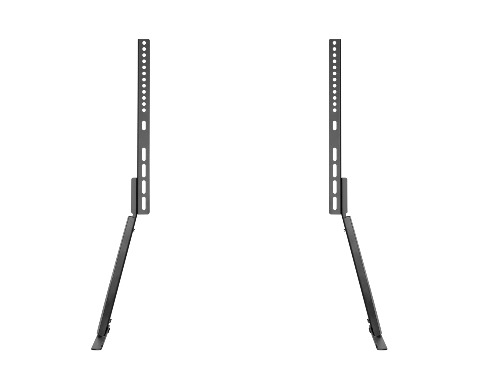 An adjustable universal TV stand for 32"–70" TVs that offers a minimalist style and customizable features for your home. This tabletop stand is the perfect solution as replacement feet and is designed to fit most brands of flat-screen TVs (LED, LCD, OLED) between 32 and 70 inches via VESA mount. The frictionless tilting design makes it easy to adjust the screen forward or backward for an improved viewing experience and reduced glare. With three different height adjustments, the stand can be tailored for optimal viewing and make room for a soundbar on your TV bench.The stand is made of sturdy, powder-coated steel that provides a stable and durable construction for heavy screens. To protect your furniture from scratches and marks, the underside is equipped with soft EVA foam pads. The high-quality finish prevents rust and wear, ensuring a long lifespan in all environments. Additionally, the stand offers integrated cable management to hide cords and keep your media bench organized. The compact package size reduces shipping costs and facilitates handling, making the product ideal for e-commerce.