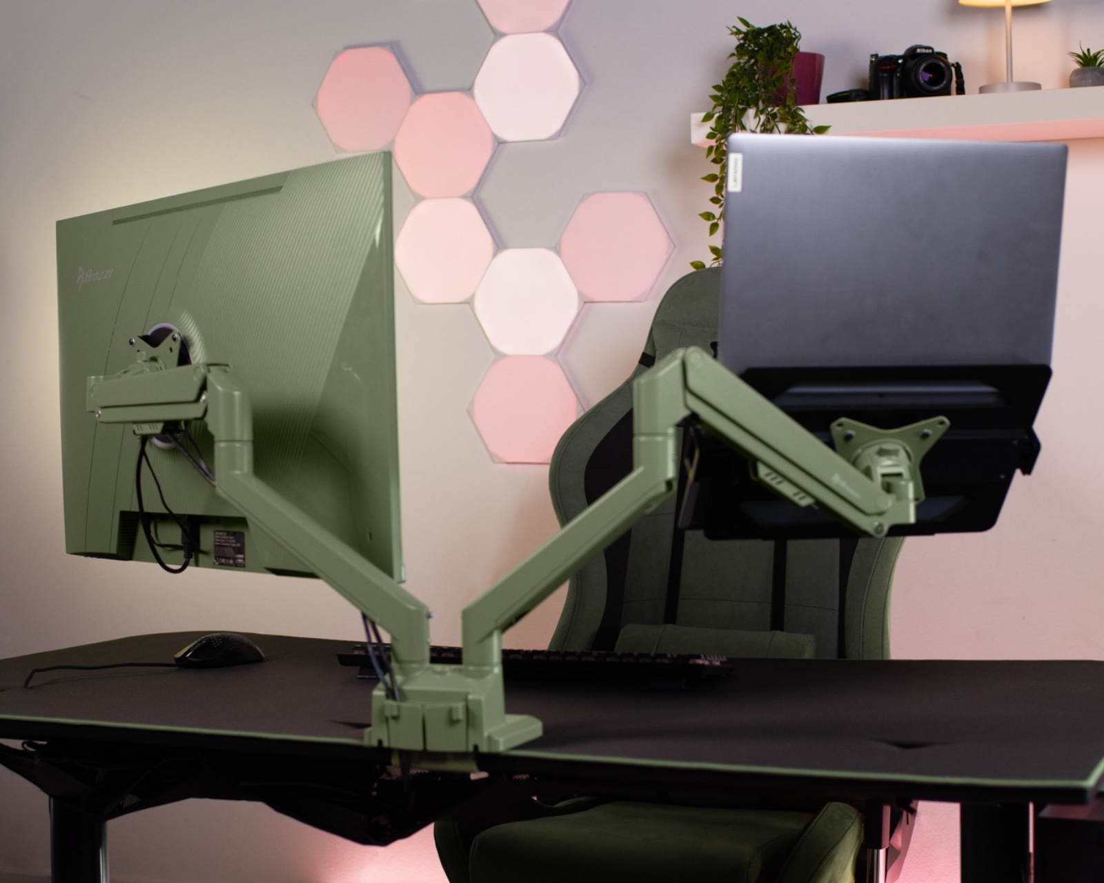 Alzare Neo Duo Monitor Stand is a product category for computer accessories from Arozzi that offers a stable solution for mounting up to two monitors. This monitor stand supports a maximum weight of 9 kg per monitor and is equipped with VESA mounts of 100x100 mm and 75x75 mm. The green color provides a distinctive look that fits well in many office and gaming environments. Thanks to its design, the stand is suitable for both gamers and office users who want to optimize their workspace.Built in steel, the Alzare Neo Duo offers high durability and stability. The stands can be adjusted for tilt between +45° and -45°, and can swing in both directions with a swing range of +90° to -90°. The 360° rotation offers further flexibility when adjusting the monitors. The clamp makes installation easy and allows for a smooth attachment to a desk. With integrated cable management, users can organize cables to reduce clutter and keep the workspace free from mess.