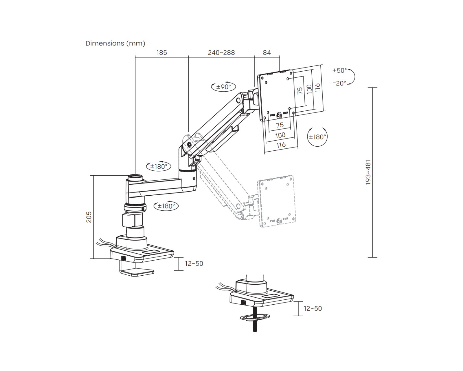 | Swivel Range | +90°~-90° |